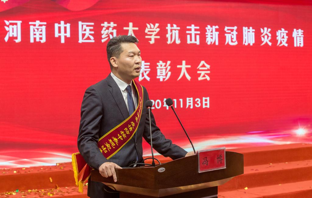 冯博在leyu·乐鱼(中国)体育官方网站抗击新冠肺炎疫情表彰大会上发言