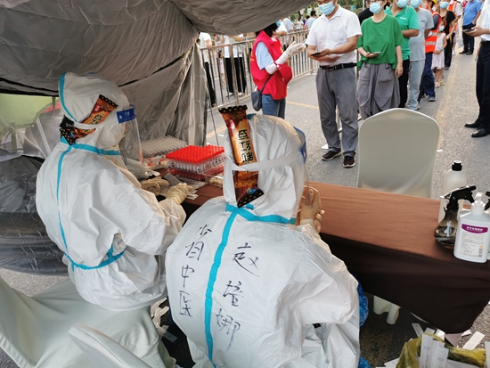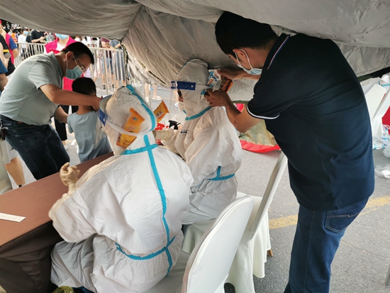 自此,二附院参与全市核酸检测人员380人均已圆满完成检测任务,安全返回。据统计,7月31日夜里23:50分,二附院第一批130名核酸检测医疗队急赴郑州二七区6个社区,完成11000人次的核酸检测采样工作;第二批200名核酸检测医疗队分赴金水区丰庆路办事处和国基路办事处,分为28组,共计完成核酸检测采样183771人次;第三批50人赴荥阳核酸检测队员分为两组共完成荥阳豫龙镇二十里铺社区11000余人次。三批检测队员共计完成20余万人次的核酸检测采样任务,为防控新冠疫情贡献了省中医院人的力量。