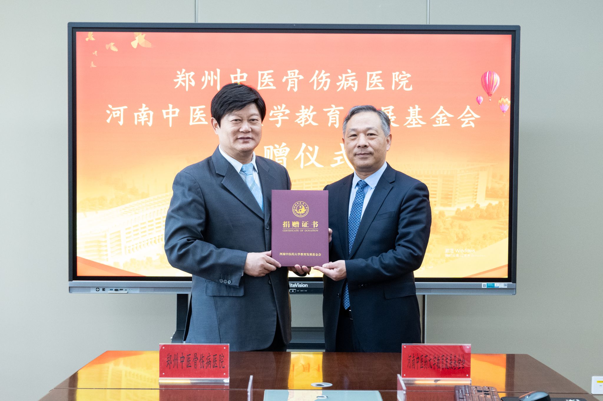 颁发捐赠证书