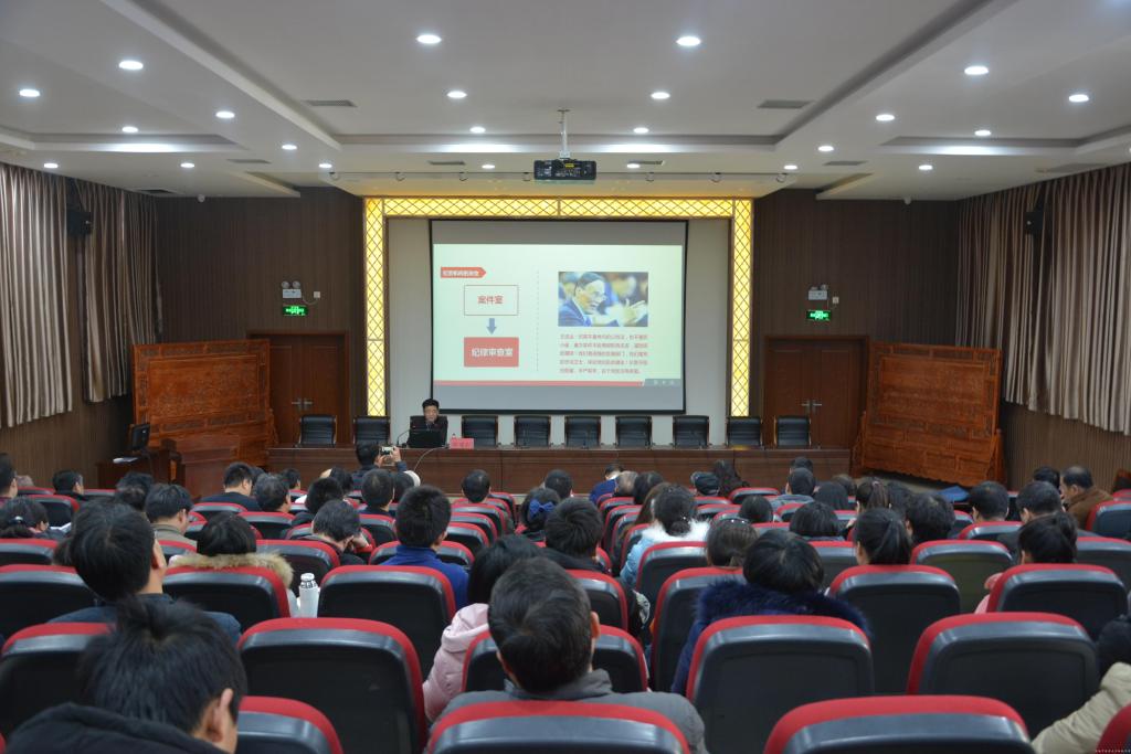 为进一步学习贯彻党的十九大精神,2017年12月19日下午,leyu·乐鱼(中国)体育官方网站学习贯彻党的十九大精神师生宣讲团专家、纪委副书记、监察处处长解建新来到东明校区,为离退休职工工作处、人才公寓建设与东明校区管理办公室、继续教育学院和第三附属医院党员干部、群众宣讲中央纪委工作报告精神。宣讲报告会由第三附属医院党委书记周运峰主持。
