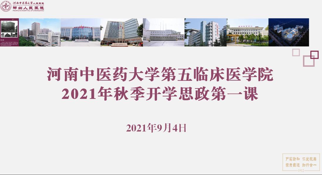 本网讯(文/李春鹏 图/翟萌嫒)2021年9月4日上午,第五临床医学院2021年秋季“开学思政第一课”线上开讲。学院党委副书记吕雁、副院长张思森、李中心、感染管理办公室副主任刘娟、学工办主任刘曼分别讲授了一堂有高度、有温度、内容丰富、精彩实用的思政课,全体师生线上听课。