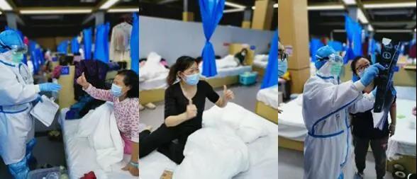 在方舱医院还有很多和这位阿姨一样的病人,他们一开始因为见不到家人,对疾病非常恐惧。经过多日来的相处,患者逐渐变得平和、乐观、开朗起来,他们开始了解、理解并心疼援鄂队员们,而队员们也被方舱医院里发生着的点滴感动并增添更大的信心和战斗的力量。这就是一方有难、八方支援的力量!这就是守望相助、共克时艰的温暖!