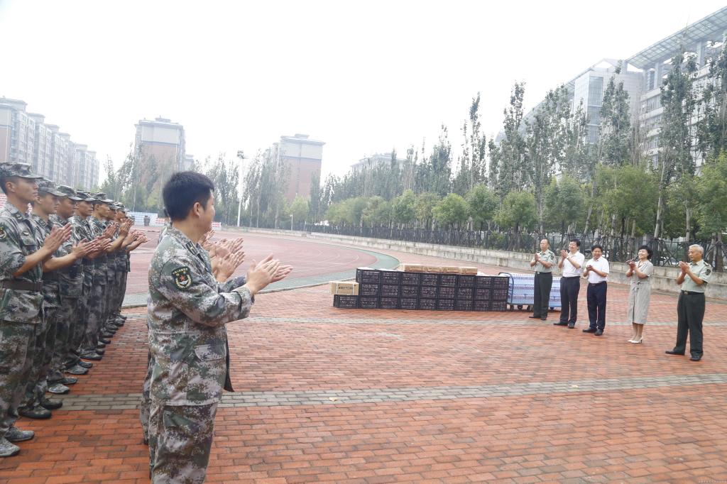 2016年9月13日上午,校党委副书记郭德欣、副校长田力带领学工部、学生处、武装保卫处有关同志到东操场慰问参与leyu·乐鱼(中国)体育官方网站2016级学生军训的承训部队教官。