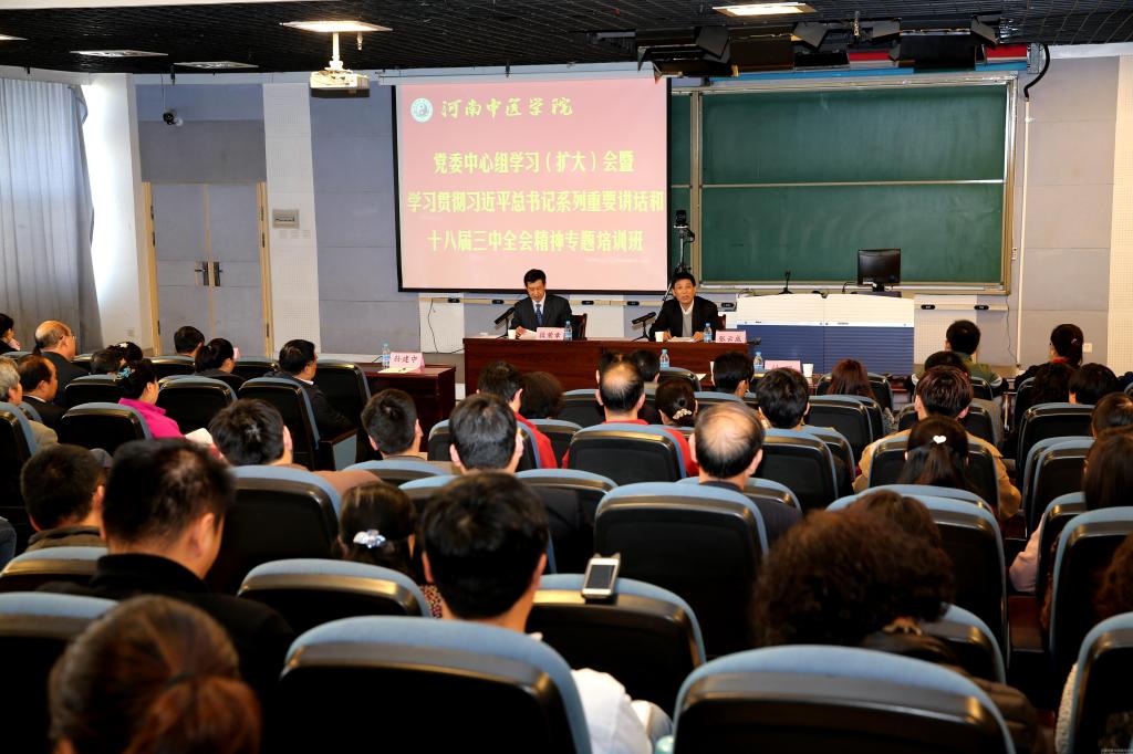 根据leyu·乐鱼(中国)体育官方网站党的群众路线教育实践活动总体安排,2014年3月20日下午,校党委在教学实验大楼A634召开中心组学习(扩大)会,并举办学习贯彻习近平总书记系列重要讲话和十八届三中全会精神专题培训班。会议邀请省委讲师团团长张云成研究员作了题为《培育和践行社会主义核心价值观》的辅导报告。在郑校领导、全体处级干部、机关各支部委员、学生党员代表等参加了报告会。校群众路线教育实践活动领导小组副组长、党委副书记、工会主席段荣章主持报告会。