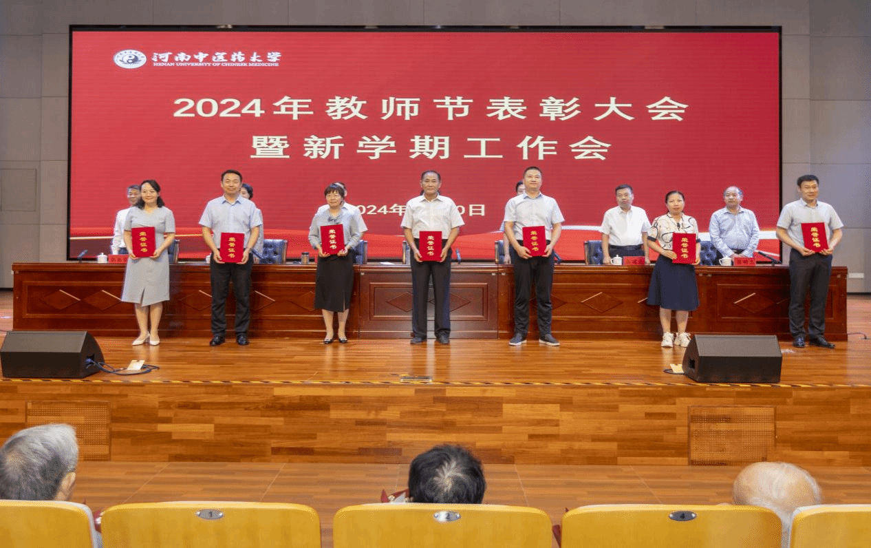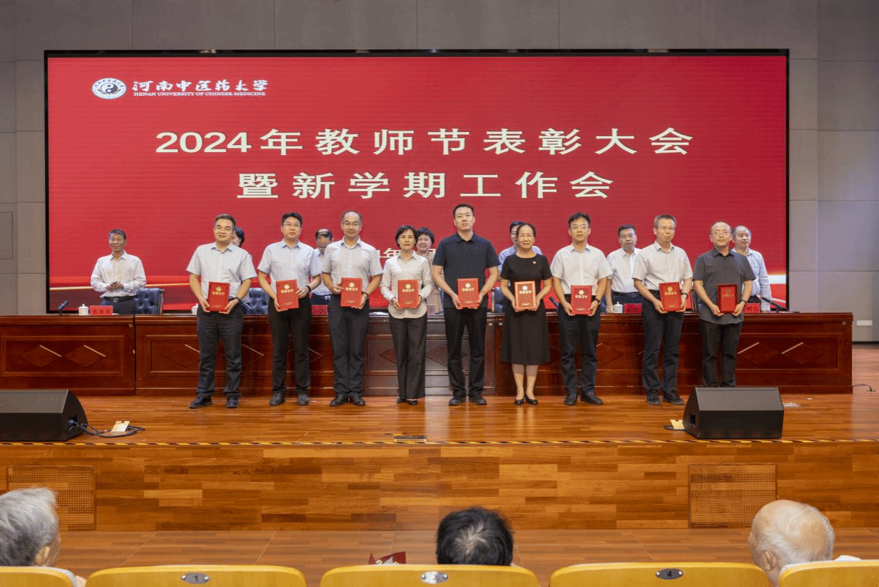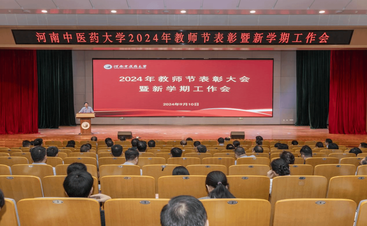 本网讯(文/贾姝 时琳 图/郭寅虎)四秩芳华,弦歌不辍;躬耕杏林,硕果飘香。2024年9月10日,我们迎来了第40个教师节。在这个暖意融融的节日里,学校召开了2024年教师节表彰大会暨新学期工作会。在郑校领导、全体中层领导干部、受表彰的先进集体和先进个人代表、离退休教师代表、教师代表、学生代表等近300人齐聚俊学楼B101会议厅,共同致敬教师节。校党委副书记、工会主席张加民主持大会。