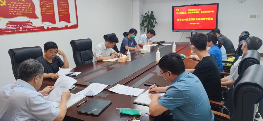 本网讯(文图/胡兴旺)为深化开展“能力作风建设年”活动,抓细抓实汛期安全防范工作,2022年6月26日上午,三附院召开专题会议,传达落实省市防汛会议精神。三附院防汛应急领导小组组长、院长张大伟,院防汛应急领导小组办公室、党委办公室、院长办公室、保卫科、后勤科及行政总值班有关负责同志参加了会议。