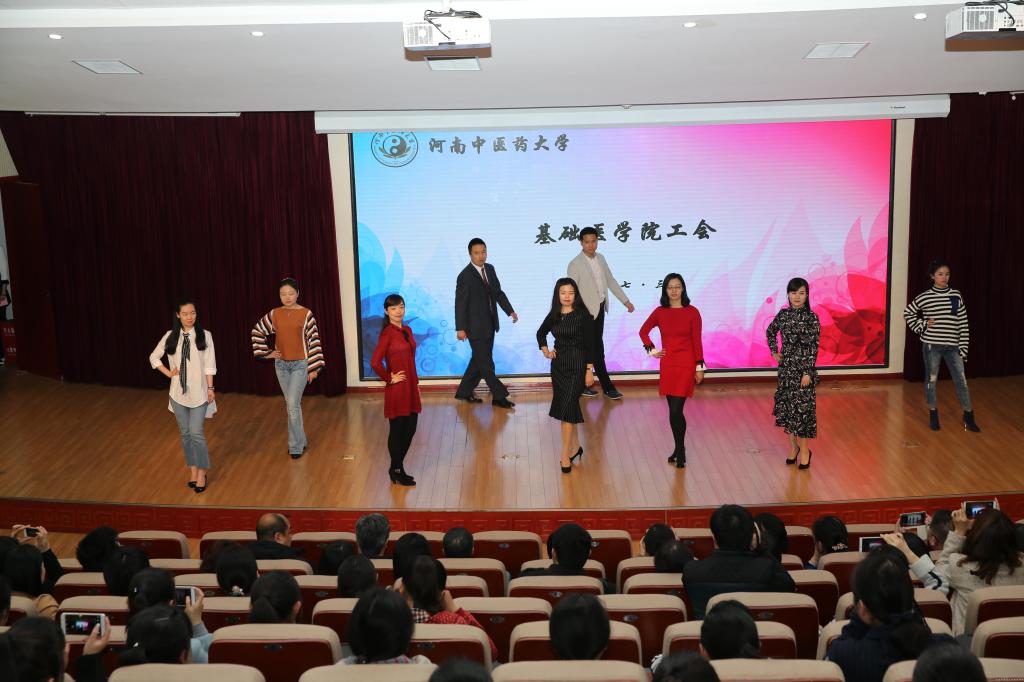 3月7日下午的女教职工风采展示活动更是精彩,学校副校长田力在活动开始之前,代表学校向全体女教职工致以节日的祝贺,对建院五十多年来女职工们所作的贡献表示感谢,希望女教职工姐妹们拥有阳光积极的心态、崇高的理想和梦想,热爱学习,学有专长,重责任能担当,有仰望天空的优雅和志向。在展示风采的舞台上,药学院、人文学院的美女们或着工作白衣,或着职业装,知性优雅,千娇百媚。机关、基础医学院请来帅哥助演,以阳刚洒脱衬托出妩媚妖娆。给观众们带来最大惊喜的是体育教研部,俊男靓女身着运动装,伴着动感的音乐,肆意挥洒着青春的美好。主任孙再玲更是亲自上阵,反串演绎的上海滩片段嗨爆了全场。