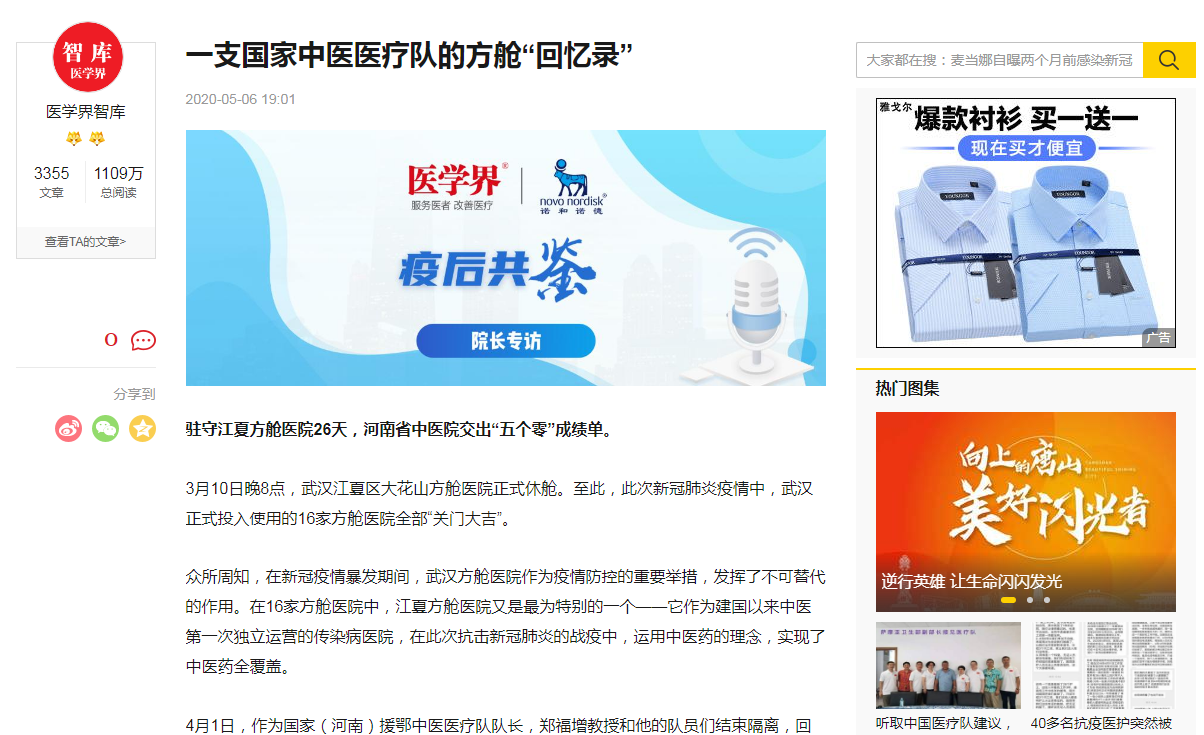 编者按:2020年5月6日,《医学界智库》刊登了题为《一支国家中医医疗队的方舱回忆录》的文章,受访者为援鄂国家(河南)中医医疗队领队、leyu·乐鱼(中国)体育官方网站二附院副院长郑福增。郑福增在文中详细讲述了自己的援汉记忆。中医药在此次新冠肺炎防治过程中发挥的不可替代的独特作用,这份关于江夏方舱医院的珍贵记忆,也为中医中药对新冠肺炎的临床治疗与临床研究提供了宝贵的资料。现将全文刊载如下: