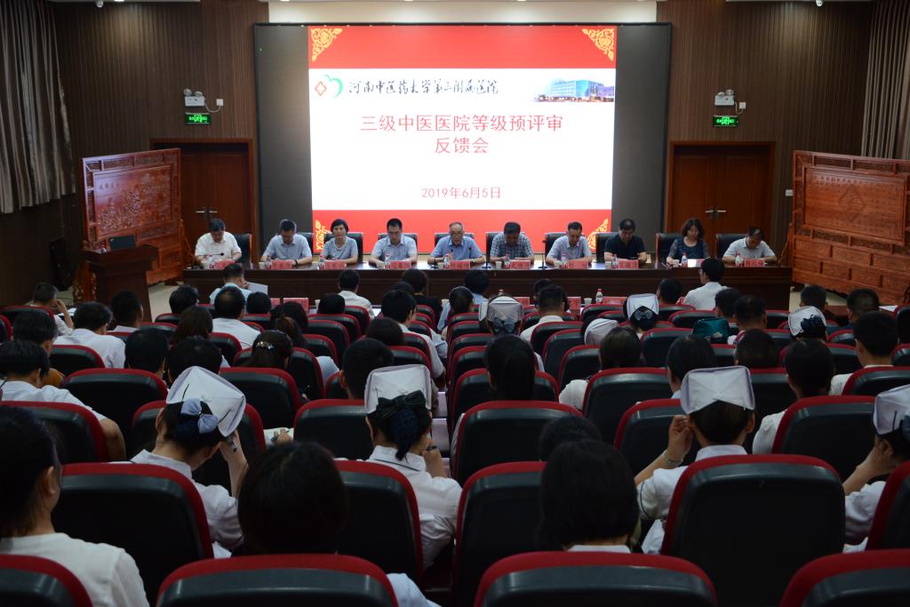 本网讯(文/李志刚 图/田辉 潘向坤)为进一步做好三级中医医院等级评审工作,2019年6月5日,三附院邀请以河南省中医院副院长郑福增为组长,leyu·乐鱼(中国)体育官方网站第一附属医院、河南省洛阳正骨医院相关专家为成员的三级医院等级预评审专家一行十人前来医院,对医院三级中医医院等级评审工作进行预评审。医院全体院党政领导、中层干部参加汇报会和反馈会。