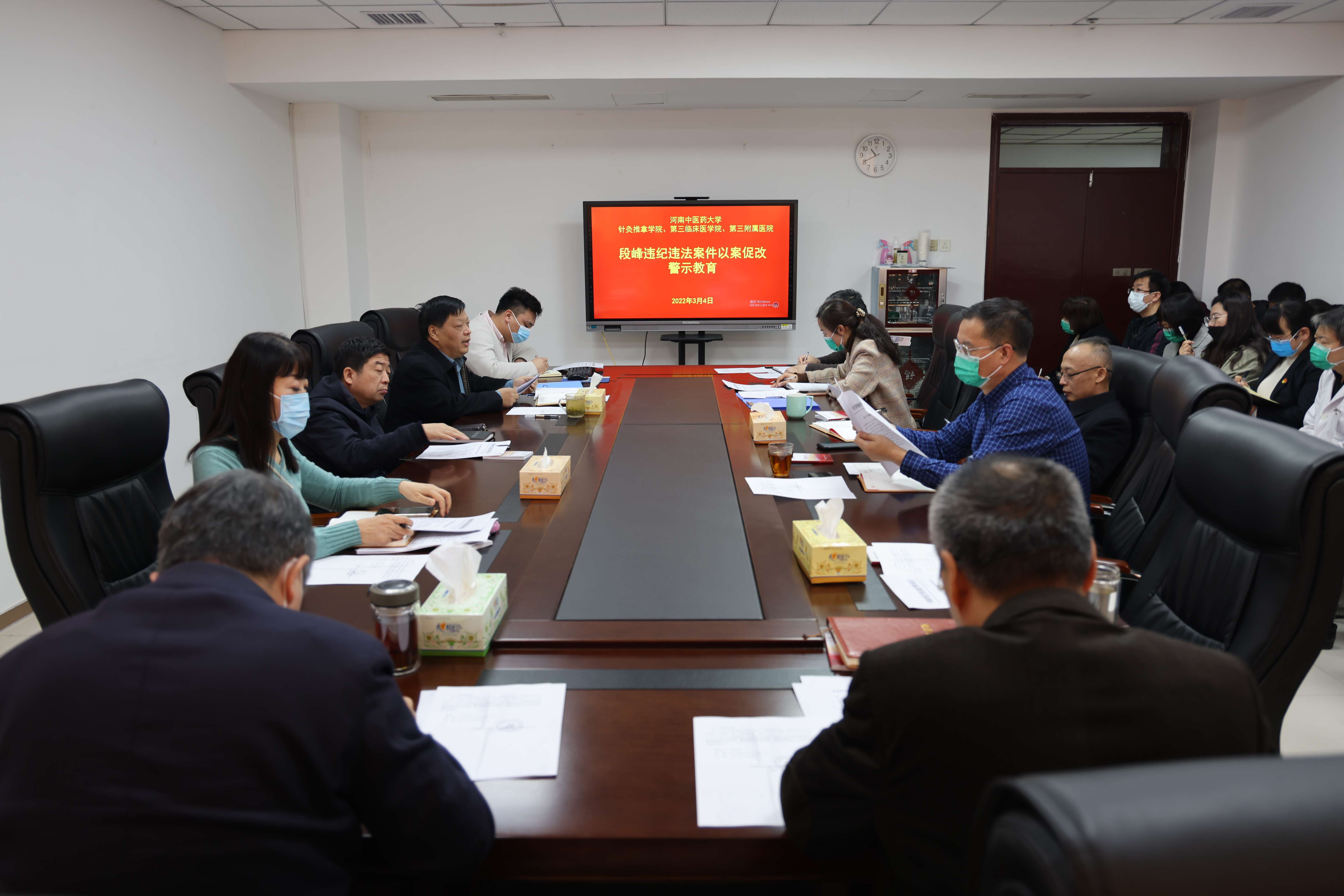 本网讯(文图/潘向昆)2022年3月4日上午,三附院党委在1号楼1106会议室召开党委理论学习中心组(扩大)学习会,集中学习段峰违纪违法典型案件,部署研判意识形态工作。医院党委书记周运峰、院长张大伟和领导班子成员,两办、宣传、纪委监察、各党总支书记、重点科室负责人等参加学习会。周运峰主持会议。
