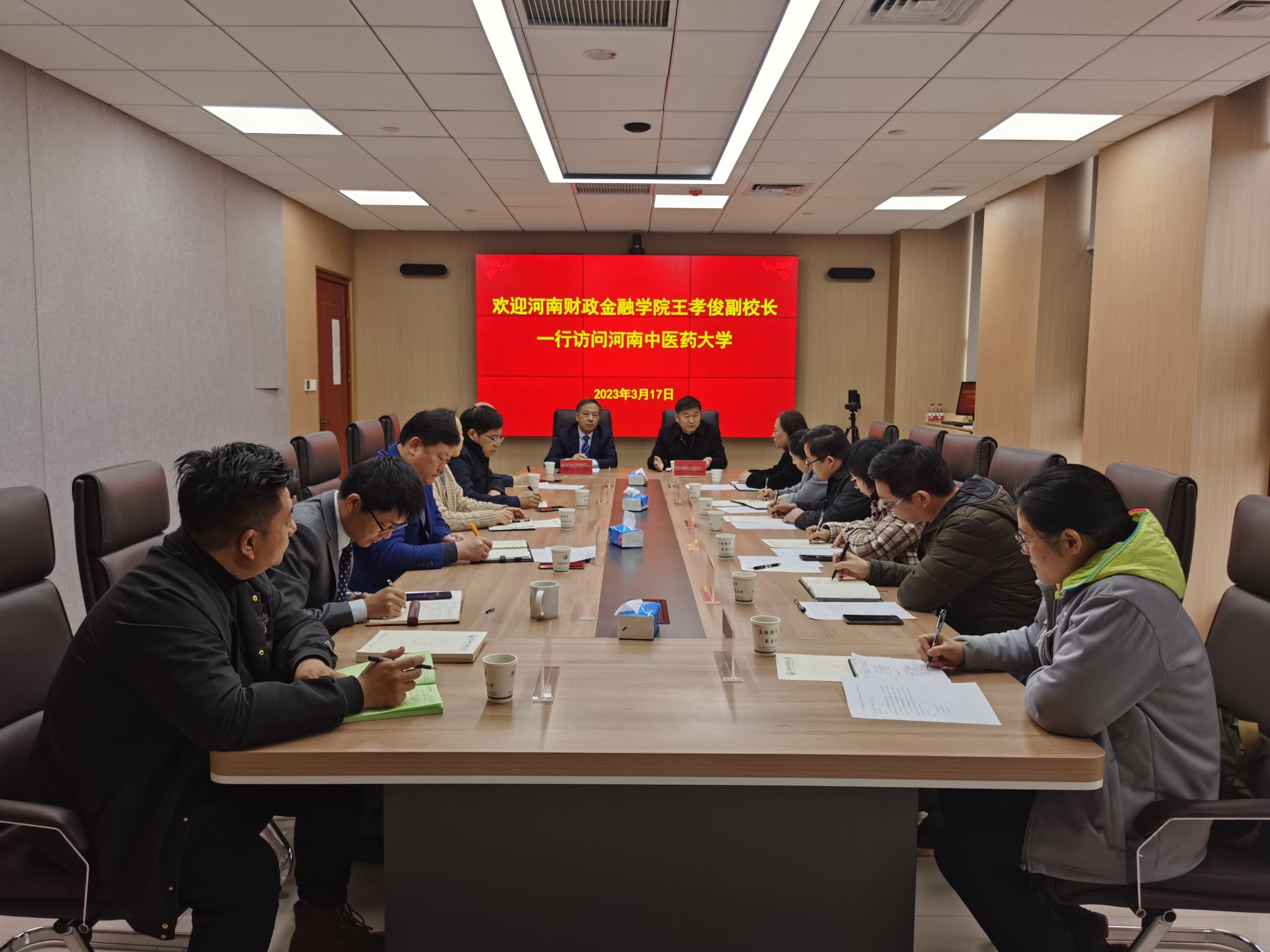 本网讯(文/李敬平 图/高崚)2023年3月17日,河南财政金融学院副校长王孝俊带领外事处、国际教育学院相关负责同志来校交流合作办学工作,校党委委员、副校长徐江雁和国际合作处、国际教育学院等相关部门负责人参加座谈,座谈会由国际合作处饶洪同志主持。