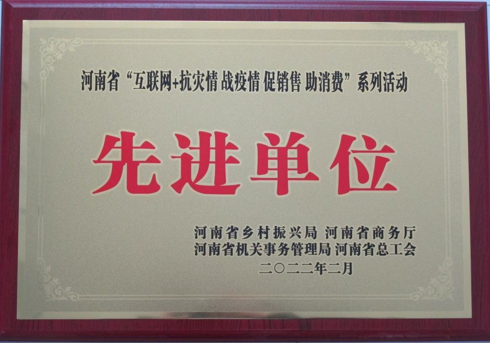 leyu·乐鱼(中国)体育官方网站荣获河南省“互联网+抗灾情 战疫情 促销售 助消费”系列活动先进单位