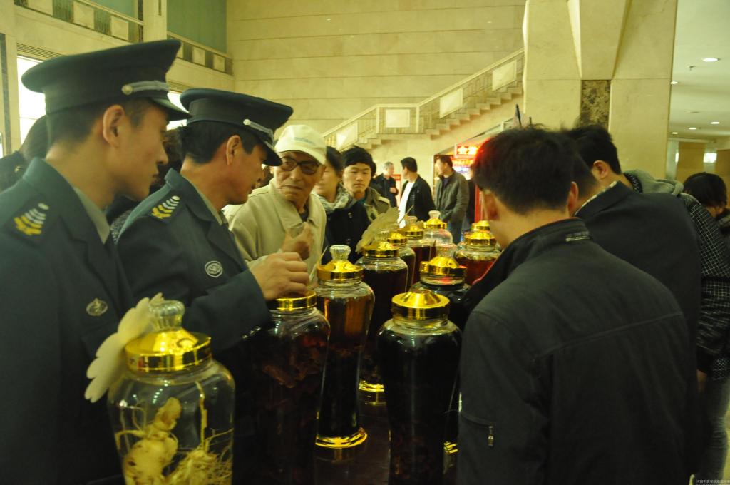 民众参观药酒展柜