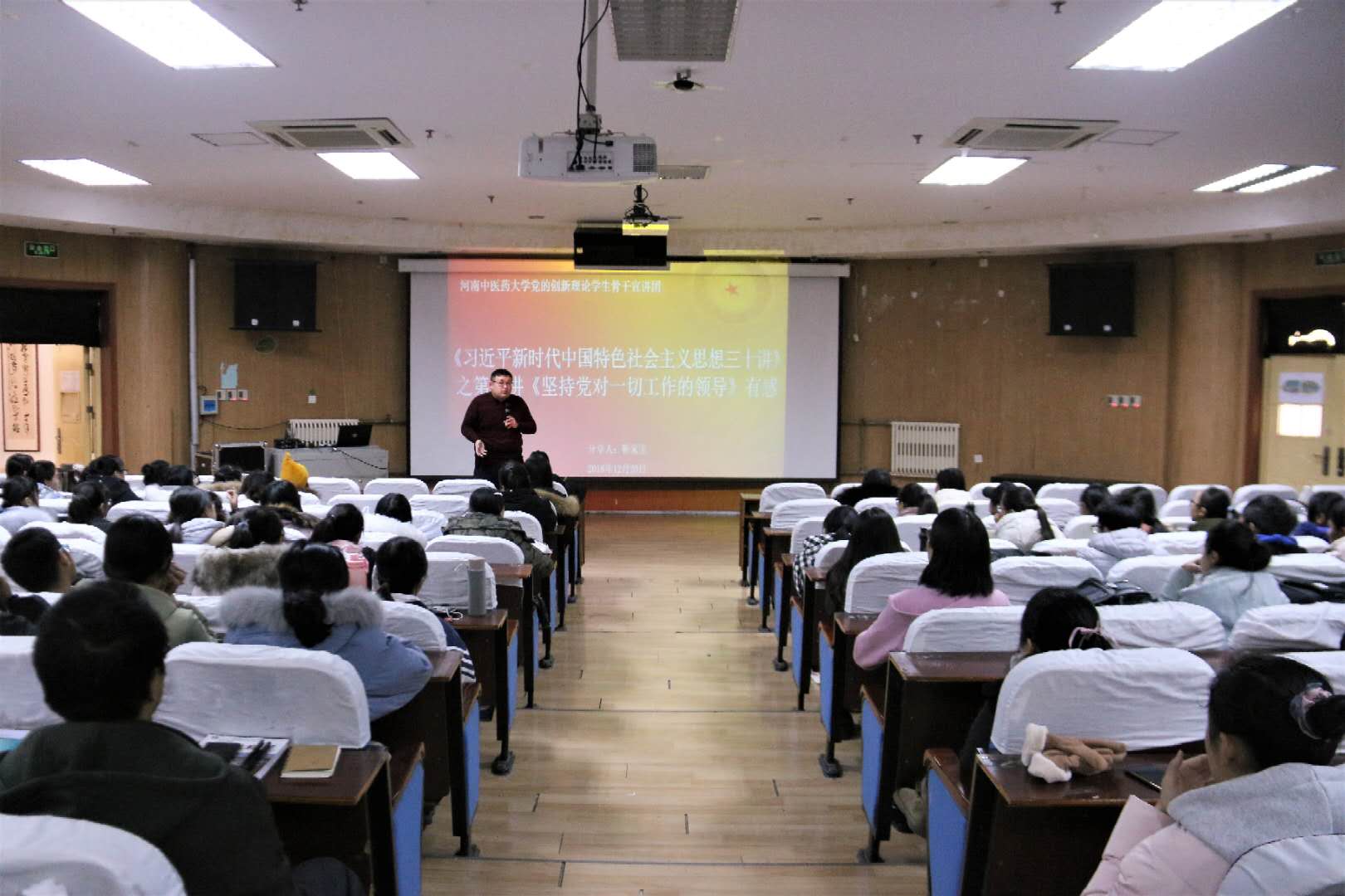 本次学习宣讲系列活动在校团委面向全校团员青年开展的“青年大学习,建功新时代”学习活动的基础上,由马克思主义学院专家教授悉心指导,通过集中学习、理论试讲、集体备课的形式,从“初心”学习社中择优选拔15名马克思主义理论专业研究生和思想理论类学生社团负责人组成学生骨干宣讲团,以学习宣传《习近平新时代中国特色社会主义思想三十讲》为主要内容,从不同方面展开面向全校基层团支部的理论宣讲,使leyu·乐鱼(中国)体育官方网站广大团员青年持续深入学习领悟习近平新时代中国特色社会主义思想和党的十九大精神,牢固树立“四个意识”,坚定“四个自信”,切实把思想和行动统一到习近平新时代中国特色社会主义思想上来,统一到实现中华民族伟大复兴中国梦上来,统一到学校党委的要求上来。