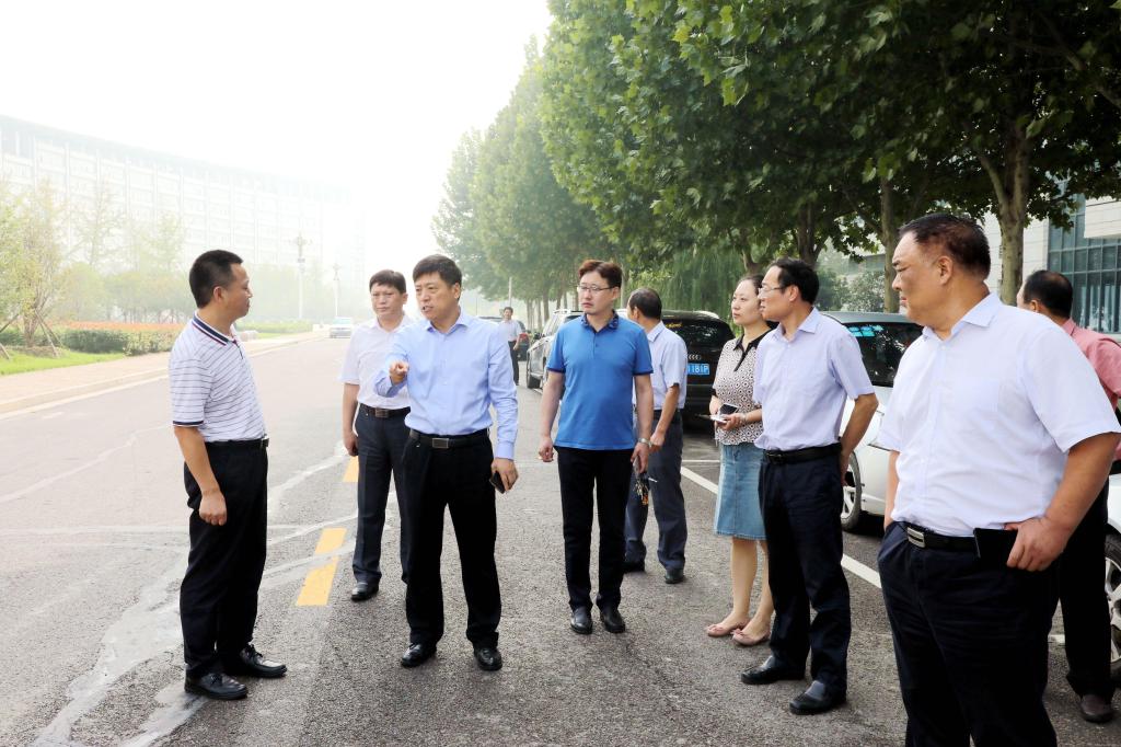 2017年9月11日上午,校长许二平、副校长张小平带领校办、后勤处、基建处、后勤集团、校产公司等部门负责人深入校园,巡察龙子湖校区新学期教学保障及项目建设情况。