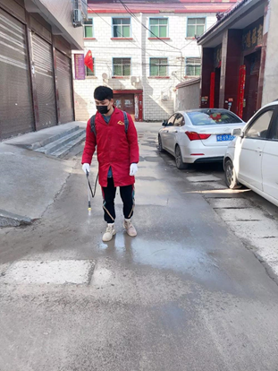 管理学院2017级张猛对所在辖区进行消杀