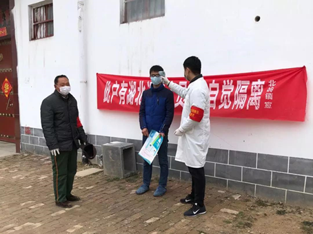 基础医学院2018级研究生孙宁宁为疫区归来村民测体温