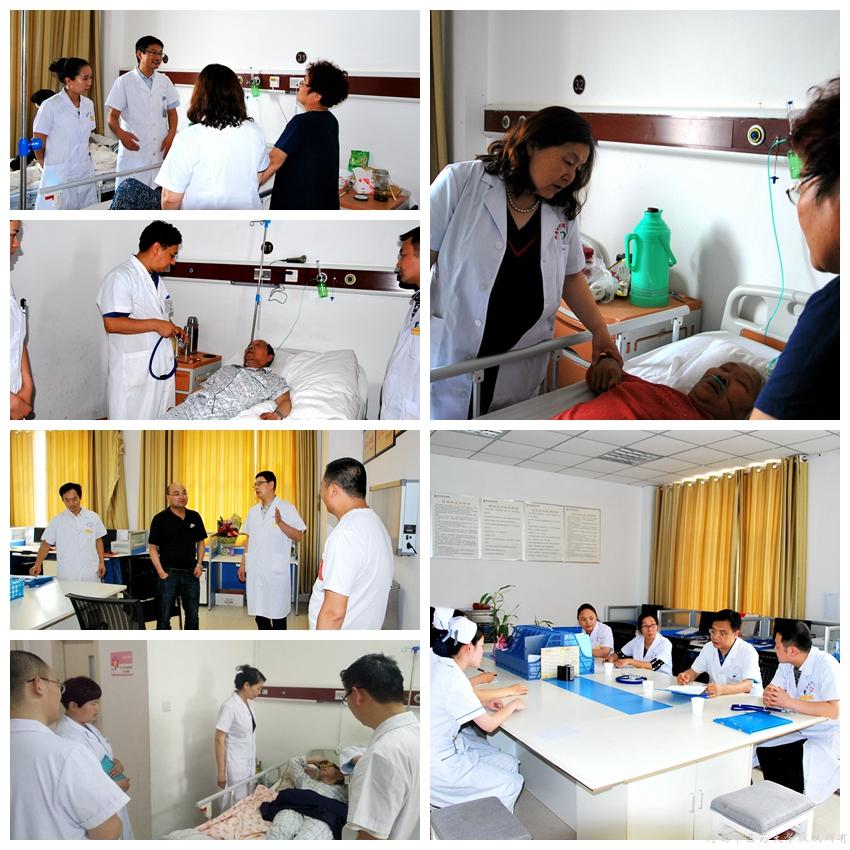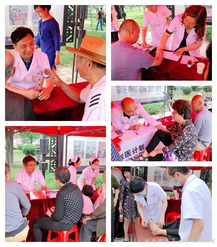 仪式结束后,一附院心血管专家杜廷海、脑病专家李燕梅、康复专家张铭、二附院骨伤科专家王上增,三附院针灸推拿专家张淑君直接奔赴义诊现场——南街村广场,等待的义诊群众已经排起了长队,专家们不顾炎炎烈日和蚊虫叮咬,接受群众询问、解疑答惑,为群众义务诊治。到午饭时分,还有数十名患者急匆匆的赶来寻医问药。中午还没来得及午休,几位专家又深入病区进行了查房和疑难病例会诊。会诊时,李艳梅教授手把手的教医生们如何查体、询问患者病症、确诊依据等,院方的医护人员对专家的乐于奉献精神和严谨治学态度深深感动。会诊还未结束,病房里闻讯赶来的患者挤满了诊室,原定的返程时间一拖再拖,群众期盼着专家们常到基层送医为他们看病。据不完全统计共这次义诊病患约300人次。