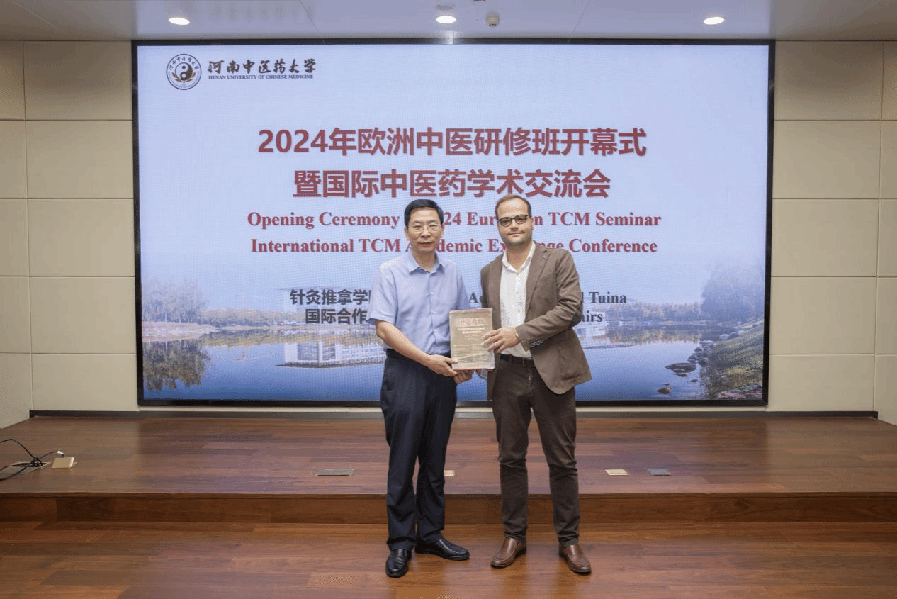 开幕式后举办了国际中医药学术交流会。第三附属医院(针灸推拿学院)院长胡仕祥对第三附属医院及针灸特色发展进行介绍。弗朗西斯科·梅尼凯利博士介绍了意大利针灸协会(AIA)和罗马尼亚中医针灸协会(AMCA)在国外开展中医针灸工作情况,并以视频形式展示了针灸国际合作状况与发展趋势。田开宇教授以“中医针灸:现代与传统、中国与世界之互鉴”为题分享了他多年来赴苏丹、沙特、瑞士等国家开展中医针灸国际交流合作的经历和体会,用事实说明中医针灸已成为中国与世界、传统与现代的联系纽带,也是促进东西方文明互鉴的重要力量。最后,与会人员在现场提问环节进行了交流和互动。