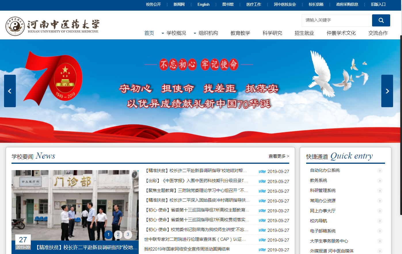 本网讯(文图/吴晋一)宣传思想工作是党的一项极端重要的工作。在全校上下扎实开展“不忘初心、牢记使命”主题教育、努力推进转型发展、奋力创建“国际知名、国内一流的教学研究型中医药大学”的重要时期,在全国上下深入贯彻落实习近平新时代中国特色社会主义思想和党的十九大精神、喜迎中华人民共和国70华诞之际,2019年9月27日,捷报传来,“leyu·乐鱼(中国)体育官方网站中文网”入驻中宏网“出彩河南”栏目。