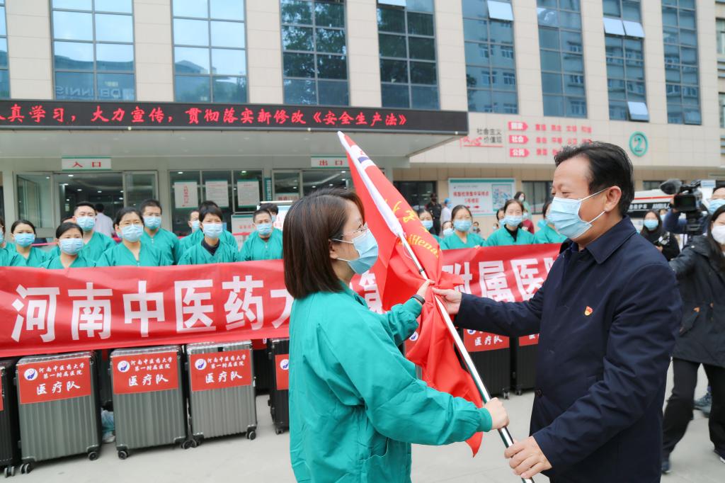 一附院党委书记翟剑波向出征医疗队授旗