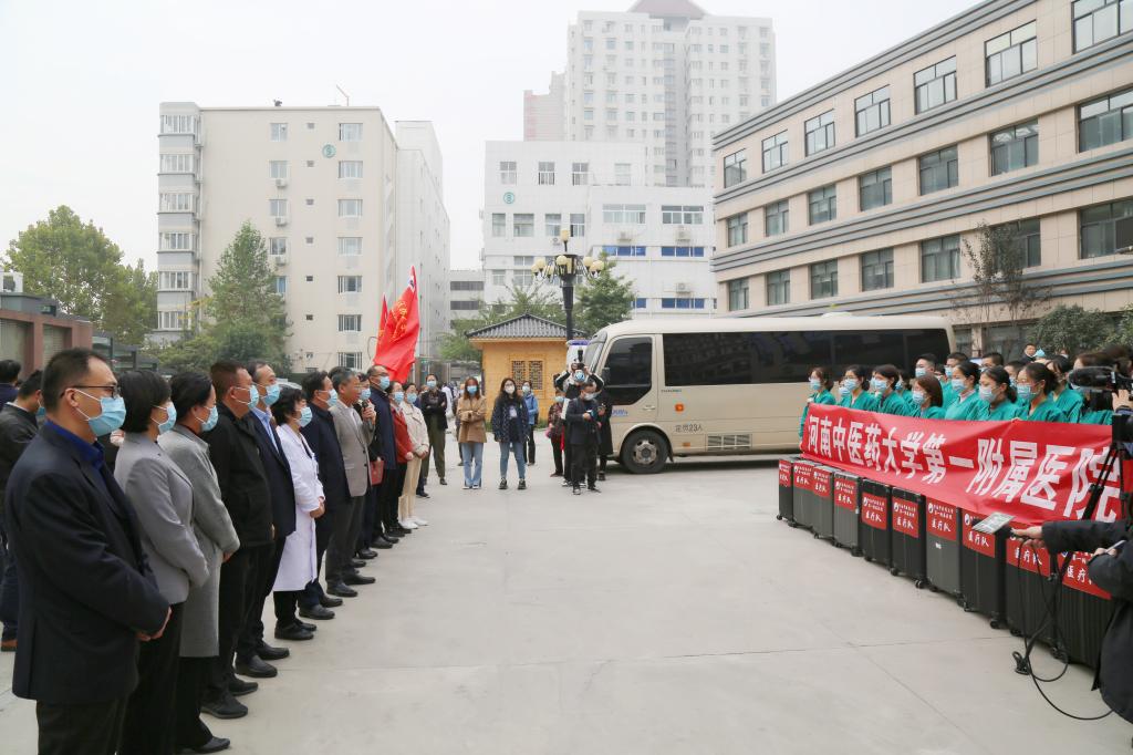 2021年11月4日上午,医院党委书记翟剑波,医院党委副书记、院长朱明军等领导,及相关科室负责人和同事们,在岐黄广场为此次出征的医疗队举办了简短欢送仪式。