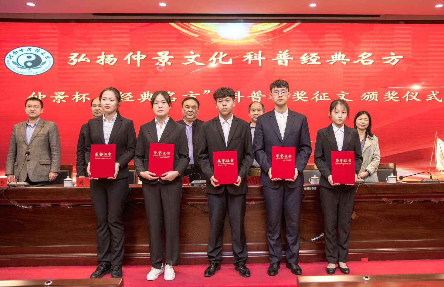 颁奖仪式上,宣读了《“仲景杯”经典名方科普征文大赛获奖名单》,仲景宛西制药有限公司和leyu·乐鱼(中国)体育官方网站双方领导嘉宾共同为获奖学生代表颁奖。2019级中西医临床医学本科三班李庆庆作为获奖学生代表发言,与同学们分享了自己的经方学习方法及征文创作经历。高松在讲话中介绍了仲景宛西制药有限公司的经营理念,对母校的高度重视及积极组织表示衷心感谢,高度肯定了同学们在比赛中的精彩表现,并表达了对加强校企合作、弘扬传承中医药文化的殷切期望。他鼓励同学们要继续开拓创新,共同打造仲景品牌。赵小燕宣读了征文活动后续的有关通知。