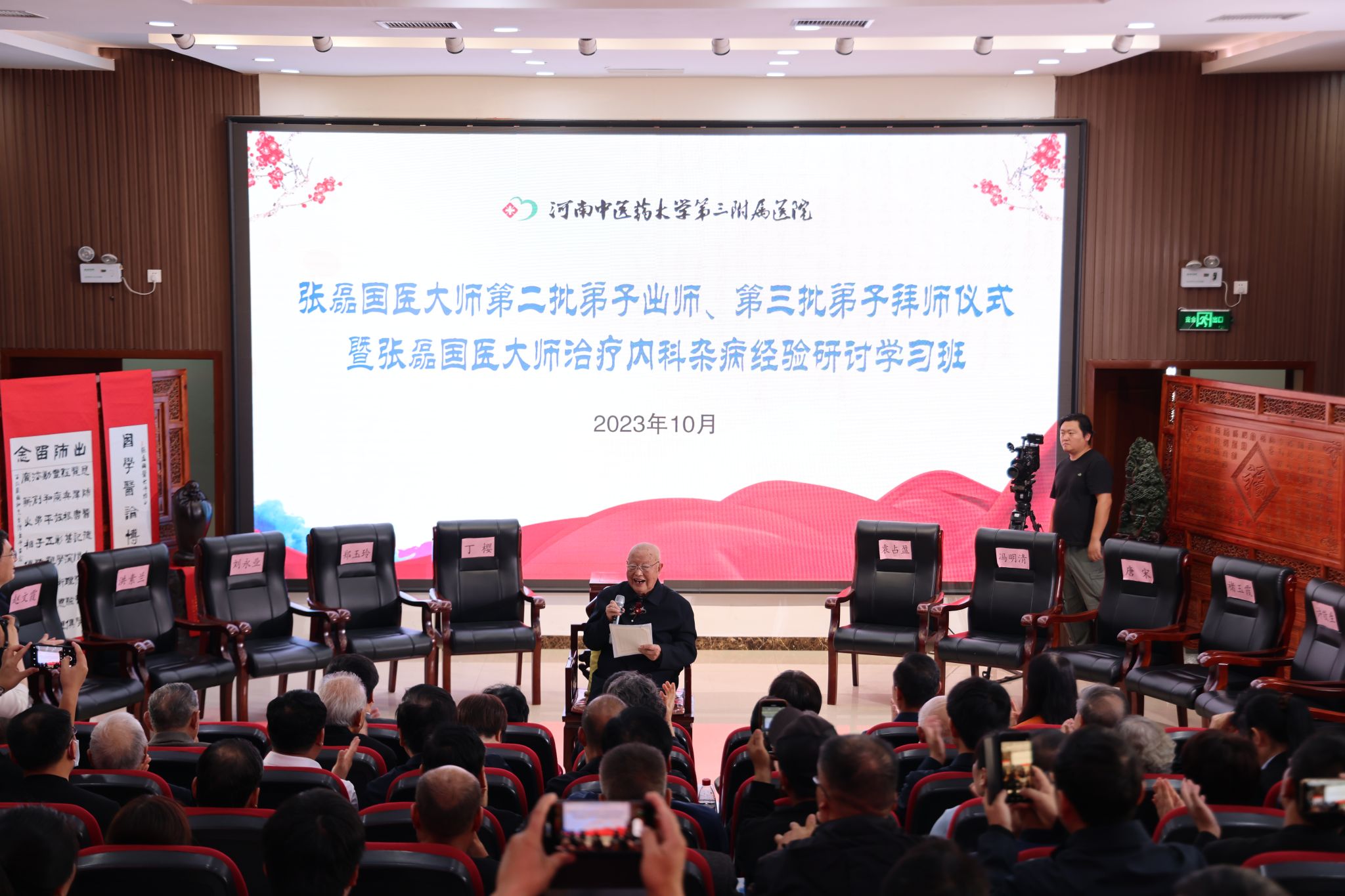 本网讯(文/于诗航 图/荣强 潘向昆) 一年好景君须记,最是橙黄橘绿时。2023年10月29日,张磊国医大师第二批弟子出师、第三批弟子拜师仪式暨张磊国医大师治疗内科杂病经验研讨学习班在三附院举办。