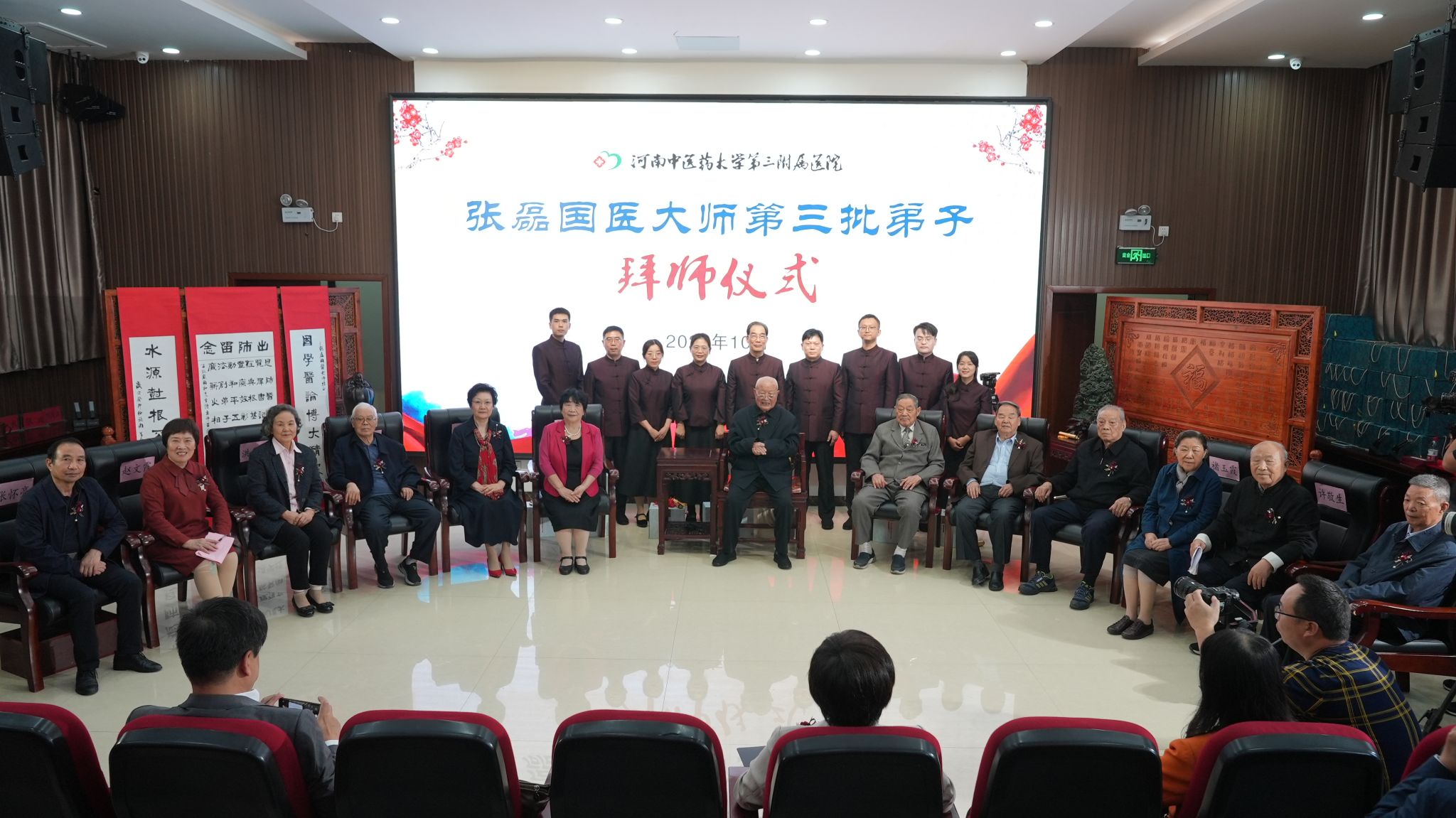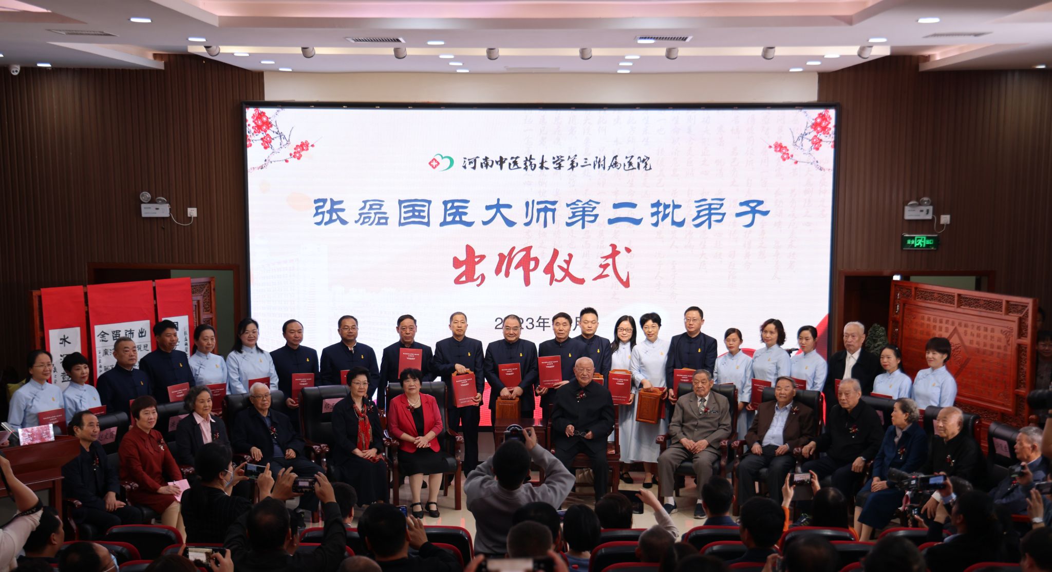 国医大师张磊,河南省卫生健康委员会二级巡视员张健锋,学校党委书记李小芳,一、二、三附院名老专家等,张磊教授众弟子学生及三附院党委书记张晓东和领导班子成员参加仪式。仪式由三附院副院长高翔主持。