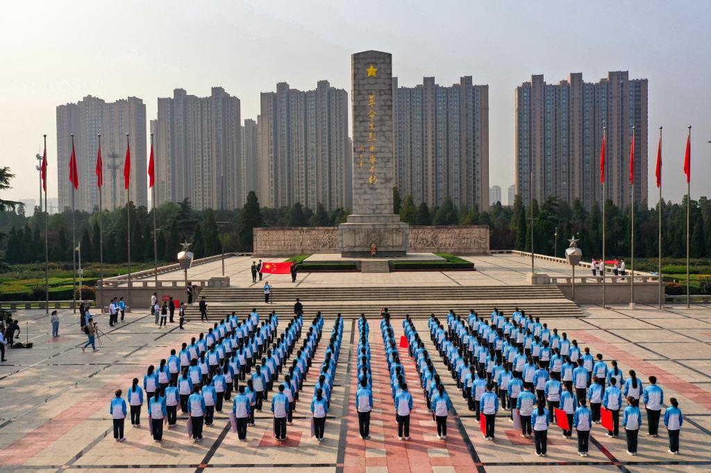 当天上午,全体人员来到郑州烈士陵园革命先烈纪念碑广场,缅怀革命先烈的丰功伟绩,向革命先烈致敬。仪式在高亢的国歌声中展开,全体人员面向纪念碑默哀,团员代表向革命烈士敬献花篮,并进行主题演讲,分享了参加全国少数民族传统体育运动会志愿者工作感悟,表达爱国报国的决心。被毛泽东主席誉为“坚持大别山革命斗争的一面红旗”的革命英雄刘名榜后代刘小妹讲述了先辈的光辉事迹,并勉励同学们要继承革命先烈遗志,与祖国共奋进,为人民做贡献。王艺从人民英雄纪念碑碑文讲到为人民解放牺牲的革命先烈,诠释了红色政权是怎么来的、新中国是怎么来的、今天的幸福生活是怎么来的,与同学们分享了感悟。王艺指出要牢记总书记嘱托,传承红色基因,发扬五四精神,青春建功中原更出彩。最后,全体人员整齐列队、手持红色卡片组成“70”字样,同唱《我和我的祖国》,庆祝新中国成立70周年。仪式结束后,全体人员到中原英烈馆进行参观,追忆革命先烈的光辉事迹。参加活动的团员青年们纷纷表示,要以革命先烈为榜样,不忘初心、砥砺奋斗,争做新时代勇担民族复兴大任的追梦者和圆梦人。