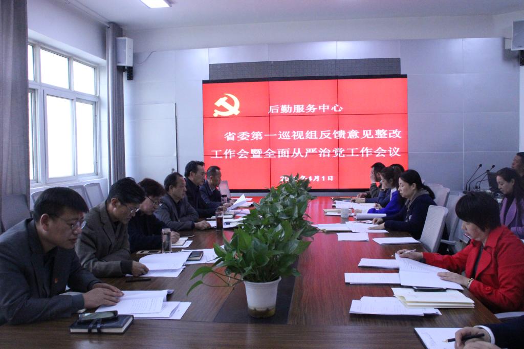 本网讯(文/张雅琦 图/王贝)2019年4月1日,后勤服务中心党总支召开省委巡视整改工作暨2019年全面从严治党工作会,领导班子成员、副科以上干部及全体工作成员参加学习。会议由后勤服务中心党总支副书记、主任赵焕东主持。