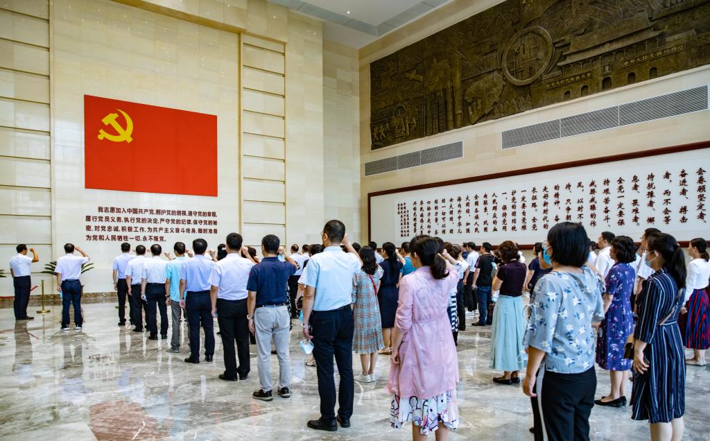 在前厅中国共产党入党誓词展示墙前,面对鲜红的党旗,全体党员庄严肃立,举起右拳,重温入党誓词。在讲解员的引导下,全体人员依次参观了“中国古代廉政文化展”“中国共产党党风廉政建设展”“新时代河南全面从严治党成果展”三个主题展厅,大家认真聆听讲解员介绍,在廉政展板前驻足观看。一组组崇廉尚洁的历史资料、一幕幕肃贪反腐的情景再现,让大家深受警醒、深受触动,对做好反腐倡廉建设有了更加清醒的认识,进一步增强了大家的廉洁自律意识和推进全面从严治党的责任感。