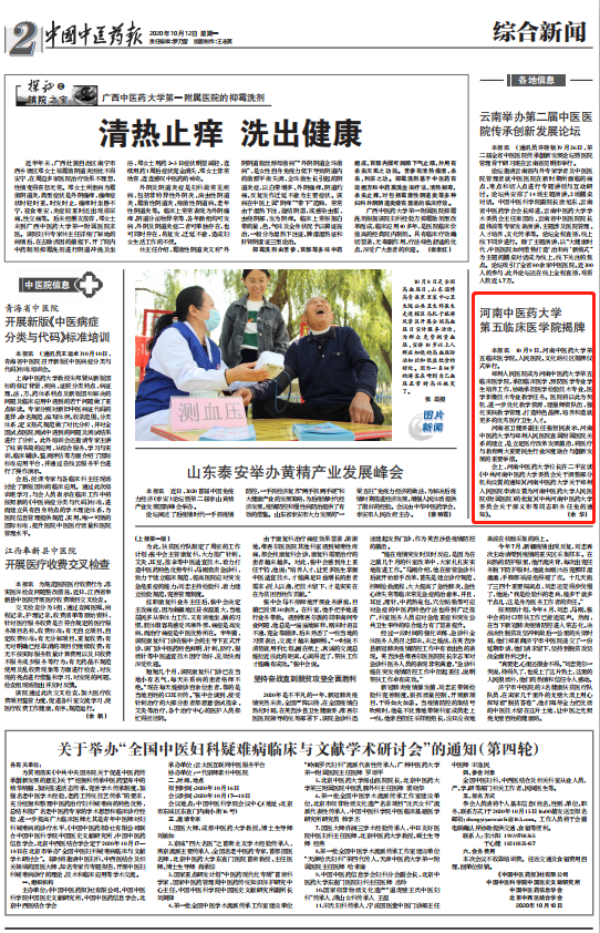 编者按:2020年10月12日,中国中医药报、中国中医药网对leyu·乐鱼(中国)体育官方网站第五临床医学院揭牌进行报道。现将中国中医药报全文刊发如下: