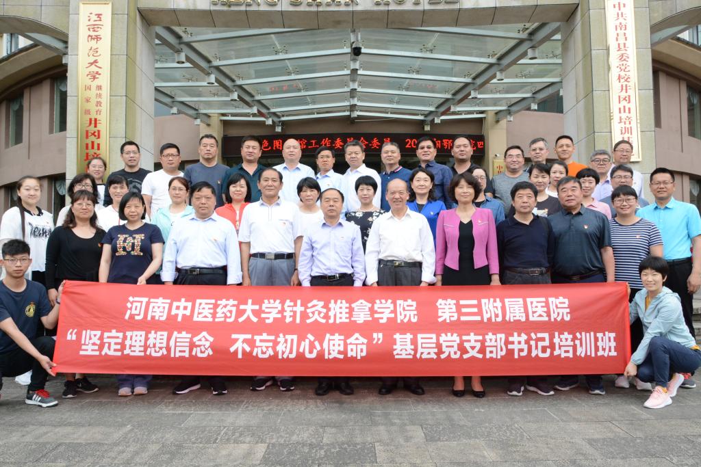 本网讯(文/胡兴旺 图/潘向昆)为深入推进“支部建设年活动”,坚定理想信念、提升党支部书记综合素质,强化党支部建设,2019年5月23日-26日,三附院赴江西井冈山开展了“坚定理想信念,不忘初心使命”党支部书记专题培训。三附院党委书记周运峰,副书记陶洁、袁晓宇,副院长张进一,纪委书记刘会勋参加培训。