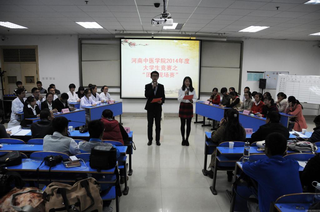 2014年11月14日晚7时,由教务处、校团委联合举办的大学生临床能力竞赛团体现场赛开赛。针灸推拿学院朱现民教授、第二临床医学院刘培民教授、武月萍副教授、基础医学院谢忠礼副教授、龙旭阳副教授以及第一临床医学院申琪副教授应邀担任竞赛评委。来自相关院部的教学副院长、教学办人员及300余名学生代表观看了比赛。