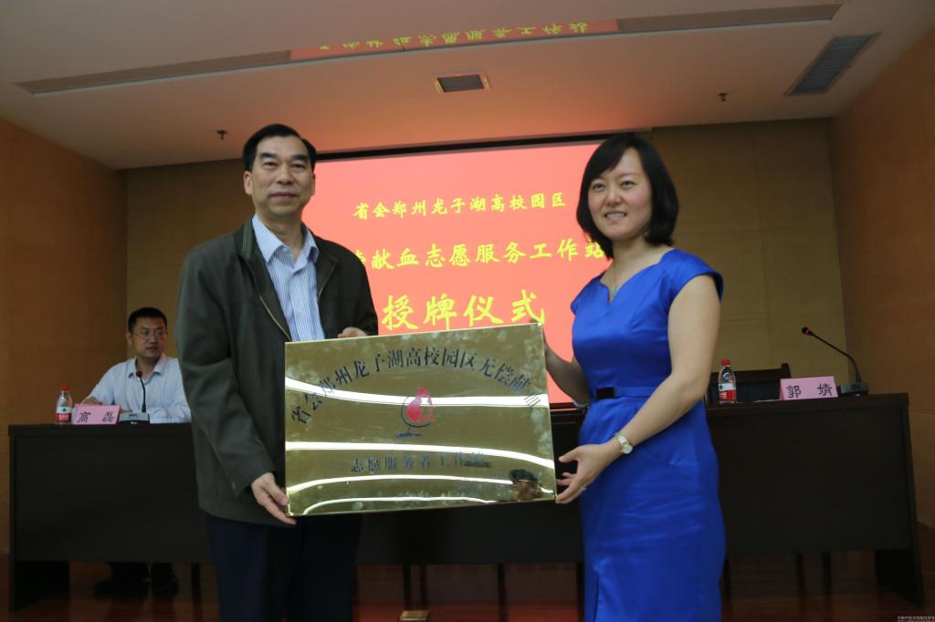 2015年5月6日,在“第68个世界红十字日”即将来临之际,“省会郑州龙子湖高校园区无偿献血志愿服务者工作站”授牌仪式在leyu·乐鱼(中国)体育官方网站举行。团省委志工部部长韩冰、省直团工委书记武皓、省红十字血液中心副主任李建斌、我院副院长徐江雁及龙子湖高校园区20所高校团委负责同志参加了授牌仪式。