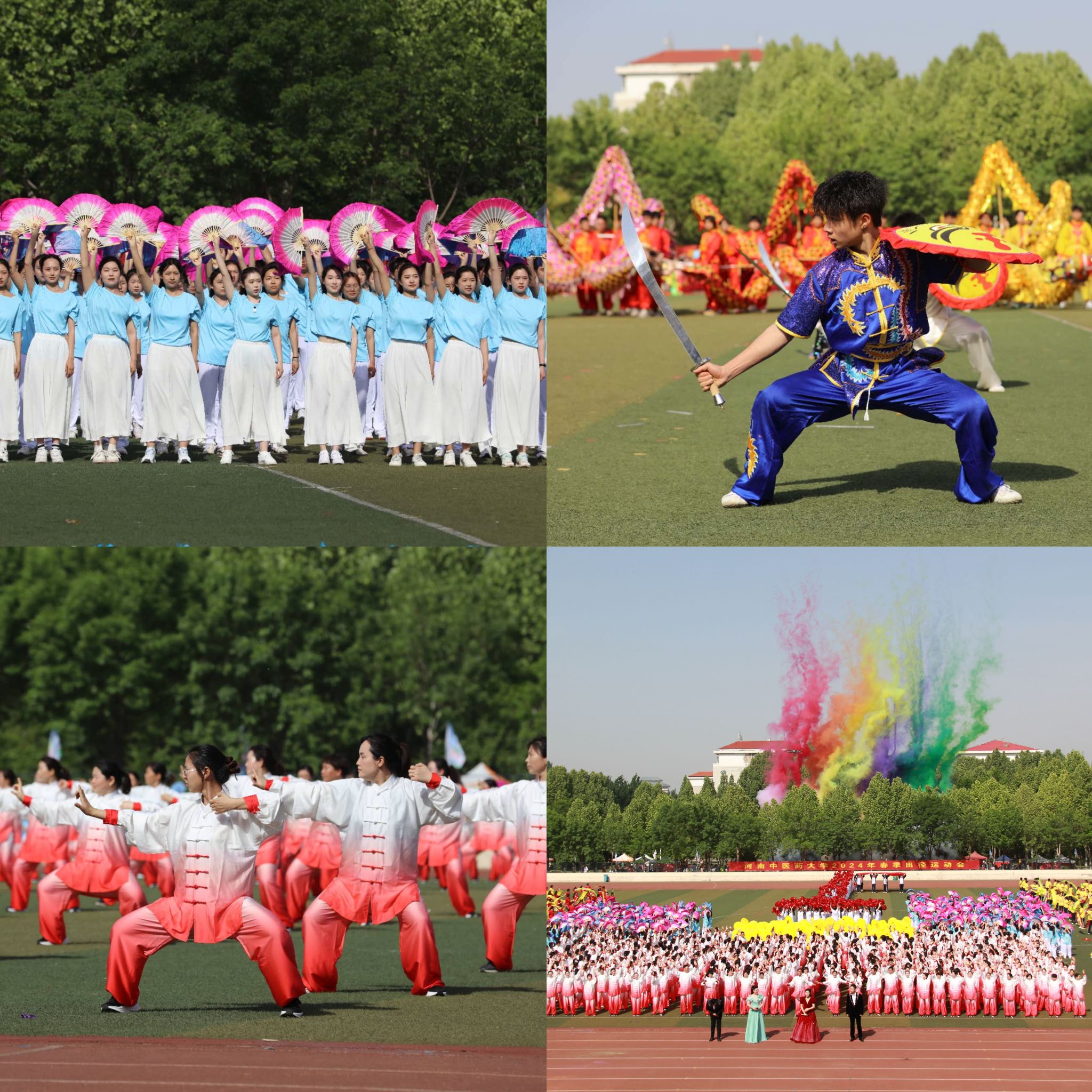 鸣鼓铮铮,喧响动天,戛玉敲冰催节进,群城倾覆气滔天。在威风擂鼓队气势磅礴的鼓乐抨击声中,开幕式节目表演拉开帷幕。表演共分为《锦瑟华年》《锦片前程》《锦向未来》《锦绣未央》四个篇章。《锦瑟华年》篇章中,威风擂鼓队气势磅礴刚劲、动作整齐划一,来自11个学院的350名参演学子精神抖擞、意气风发,在美好的锦瑟华年中,跳起了欢快的健身操和啦啦操,展现了河中医学子的风采和风貌。《锦片前程》篇章中,陈式太极拳、太极剑、太极扇、八段锦、易筋经、武术短兵、传统舞龙等,展现了中华武术的精妙,中华文化的魅力,为大家带来了盛大的视觉盛宴和无尽的震撼。《锦向未来》篇章中,全校31个基层工会600余名教职工齐聚,共同展示健身气功——八段锦,一招一式之中蕴含着传统中医文化的博大精深,展现出教职工昂扬向上的精神风貌,彰显着leyu·乐鱼(中国)体育官方网站厚德博学、承古拓新的精神内核,诠释着生机勃勃的健康与和谐之美。《锦绣未央》篇章中,9个学院的416名学子带来的团体操表演彩绸飞舞、精彩绝伦,教师代表的合唱《再一次出发》将现场气氛推向高潮。