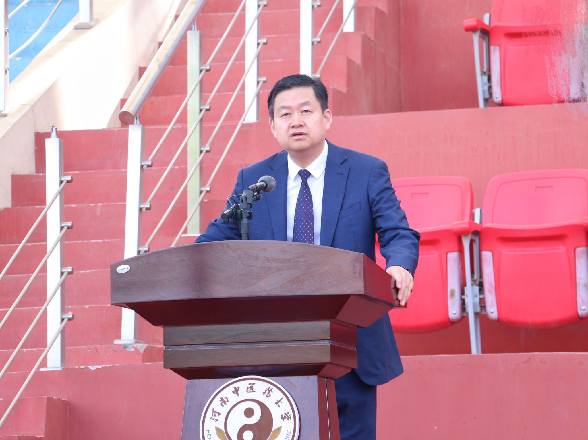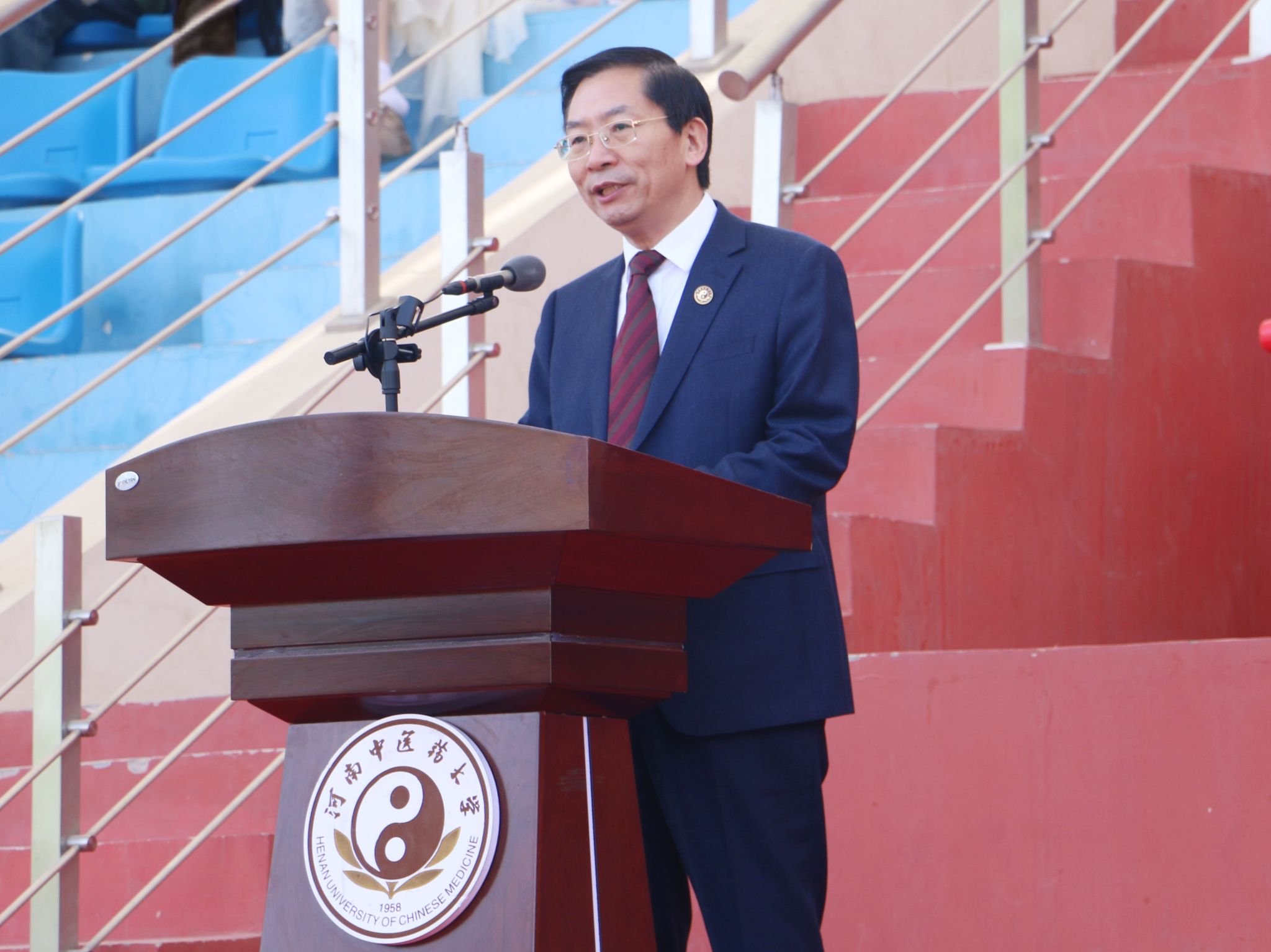 leyu·乐鱼(中国)体育官方网站校长、体育运动委员会主任王耀献致开幕词。他代表学校和组委会对运动会的隆重召开表示热烈的祝贺,对为本次运动会付出辛勤劳动的教职员工和同学们表示衷心的感谢,对参加运动会的裁判员、教练员、运动员致以崇高的敬意和诚挚的问候。他指出,学校高度重视体育工作,近年来在体育教学水平、竞技水平、体育教学改革、群众性体育活动等方面都取得了明显进步,本届田径运动会的开展是落实“教会、勤练、常赛”要求、在leyu·乐鱼(中国)体育官方网站实施“五育并举”、发展体育运动、提高学生身体素质方面的重要举措,是磨炼学生意志,增强拼搏精神的一次大型体育盛会,希望师生以本次运动会为契机,牢固树立“健康第一”的理念,把体育运动变成感受生活、充实自我、享受人生的重要方式,把体育精神融入到学习、工作和生活中去,以更加健康的体魄和积极向上的热情,为推动学校建设国际知名、国内一流的教学研究型中医药大学做出更大贡献。