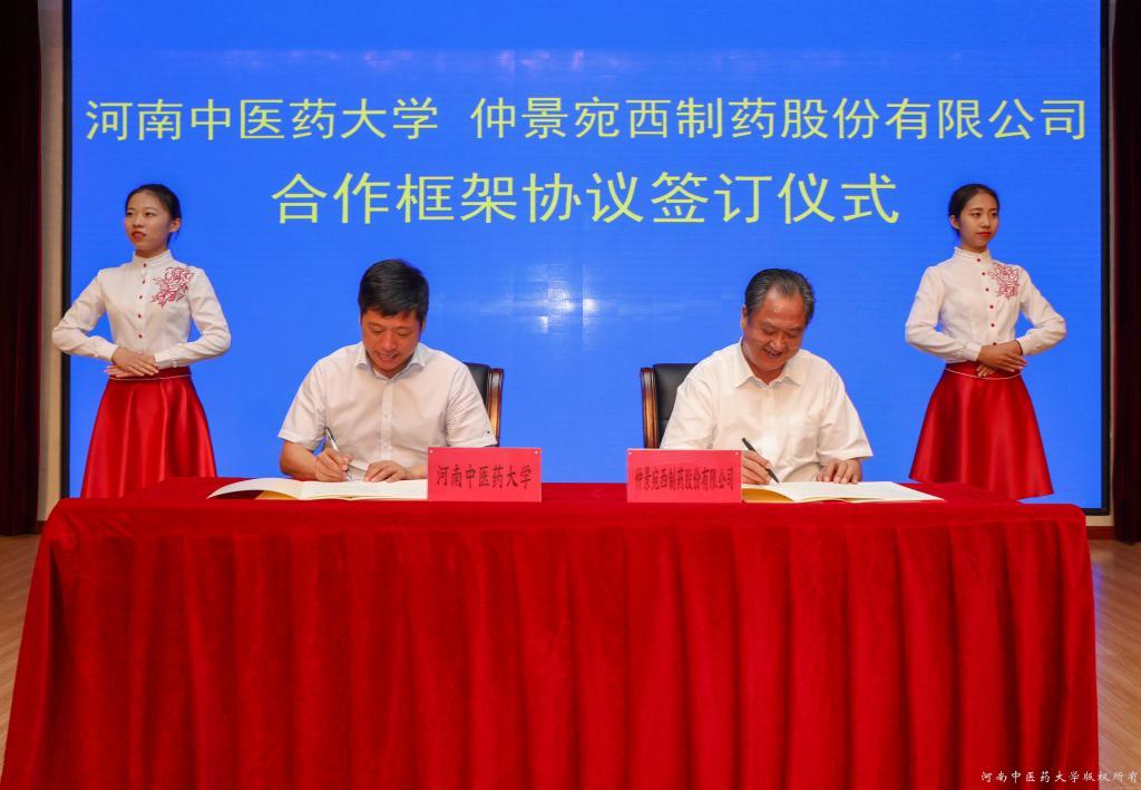 双方经过多次磋商与实地考察,在共建共赢的基础上,决定深化战略性合作伙伴关系,于2017年6月签署了新的校企合作框架协议,将在人才培养、科学研究、医疗服务、健康养老等领域实现更具成效的交流与合作,共同奏响深化合作,共谋发展的新篇章。根据协议内容,仲景宛西制药股份有限公司在十年内出资三千万元,用于学校的人才培养、师资队伍建设、高层次人才引进、科研奖励、《仲景学报》杂志创刊和建设等方面,目前2017年款项已按约定全部到账。