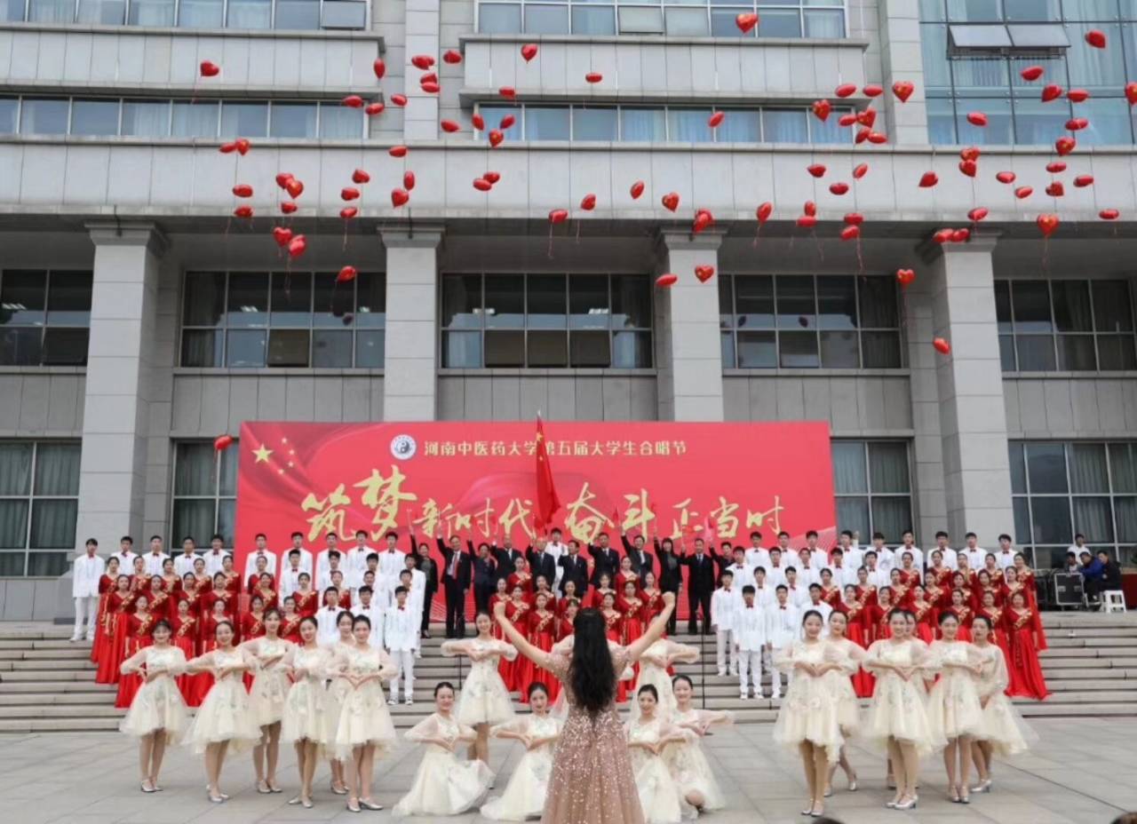 本网讯(文/李萍 王智博 图/吕东峻 王梦娇 陈铖鑫)2019年10月22日中午,由党委宣传部、校工会、校团委联合举办的“筑梦新时代 奋斗正当时”第五届大学生合唱节比赛决赛在五星广场举行。校工会副主席曹蕴俐、校团委书记高磊、一附院工会主席张婉红、党委宣传部精神文明科科长蔡源源及管理学院公共艺术教研室主任吴亚娟担任比赛评委。