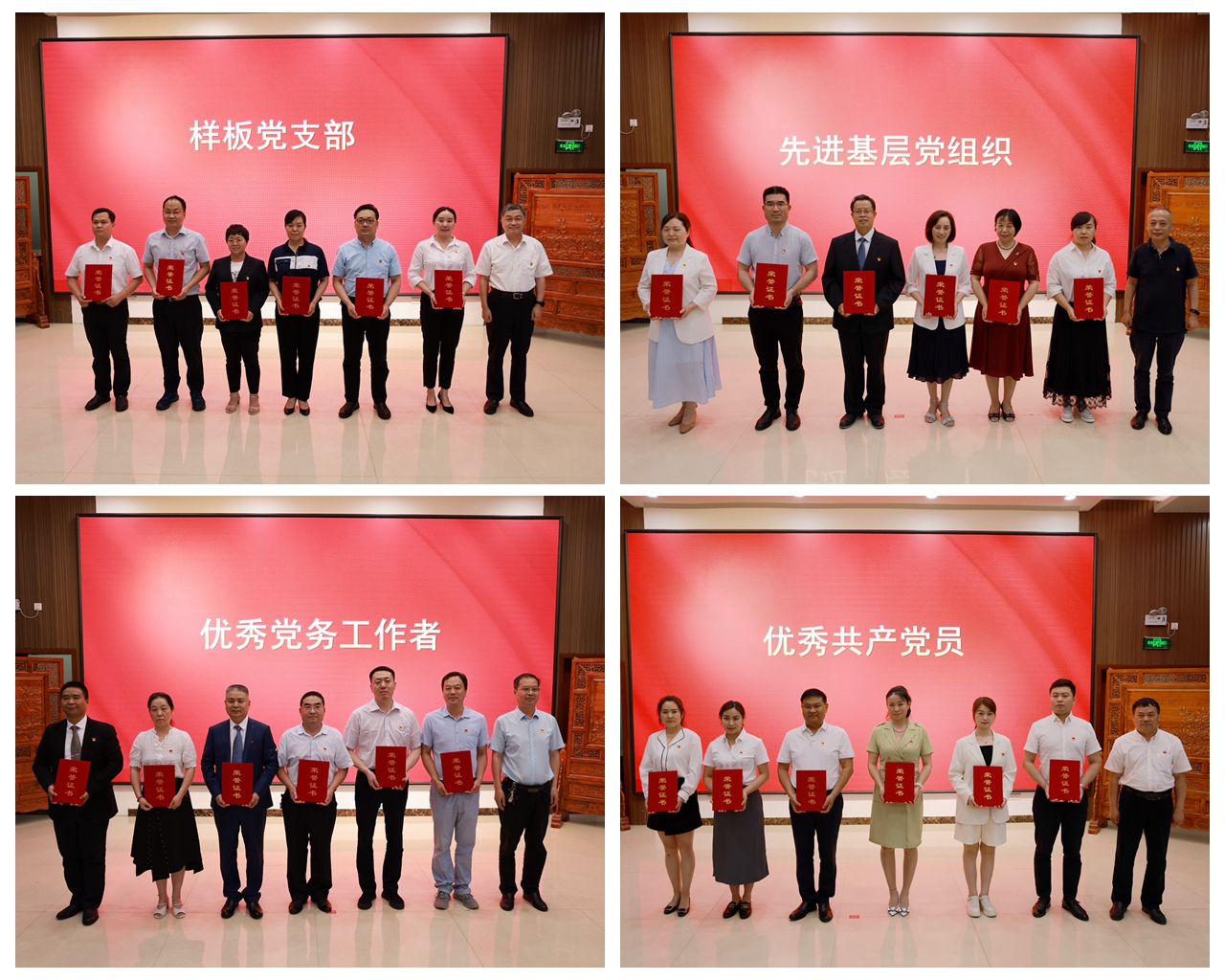 表彰大会在雄壮的国歌声中开幕,新老党员代表在鲜红的党旗下庄严宣誓。