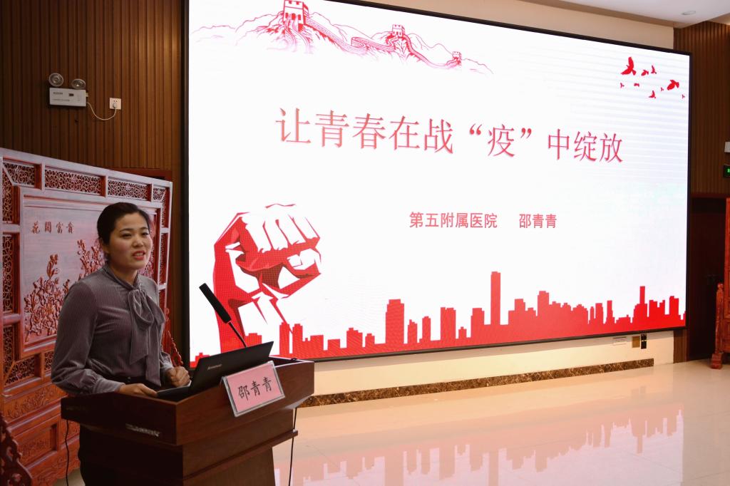 报告会在雄壮的国歌声中拉开帷幕。三附院党委书记周运峰在致辞中首先向疫情期间坚守岗位、默默奉献的“最美中医人”致以崇高敬意,向各位宣讲人员表达了最诚挚的感谢。他说,三附院党委认真贯彻落实习近平总书记重要指示精神,在校党委的坚强领导下,抓党建促防控,涌现了一批先进人物和身边榜样,他们以“战时”状态做好疫情防控,以实际行动展现了党员的先进性。今天这场报告会由leyu·乐鱼(中国)体育官方网站5位抗疫英雄组成,他们是我们学习的榜样。他表示,我们要认真聆听抗疫先进事迹,弘扬抗疫精神,持续深入推进“把灾难当教材、与祖国共成长”主题教育活动,为推动学校转型发展和特色骨干大学建设,为建设国内一流、三级甲等中医院贡献智慧和力量。就三附院广大师生如何进一步弘扬伟大抗疫精神,凝聚团结奋进力量,周运峰强调,一是要铭记历史,坚定理想信念。以史为鉴继往开来,不断增强“四个意识”,坚定“四个自信”,做到“两个维护”。二是要不负时代,争当德才兼备接班人。作为新时代的大学生,要弘扬伟大抗疫精神,矢志拼搏奋斗,奋发学习,成为德才兼备的社会主义建设者和接班人。三是要不骛虚声,传承发展中医药事业。生逢盛世,正当中医药迎来天时地利人和大好机遇,将中医药传承好、利用好、发展好,为人类健康事业做出更多的贡献。