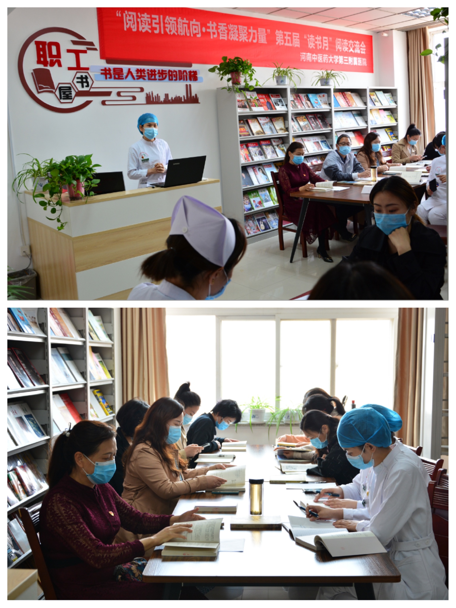 自4月起,三附院工会以第五届“读书月”为载体,开展了“读书征文”“好书分享”“阅读交流”等丰富多彩的读书活动,通过录制好书推荐、诵读经典作品视频等方式,让更多的教职工找到了喜爱的书,投身到多读书、读好书、长知识、增才干的阅读中来,不断以先进的理念武装、完善、提升自己,为医院快速发展提供强大的文化支撑和精神力量。