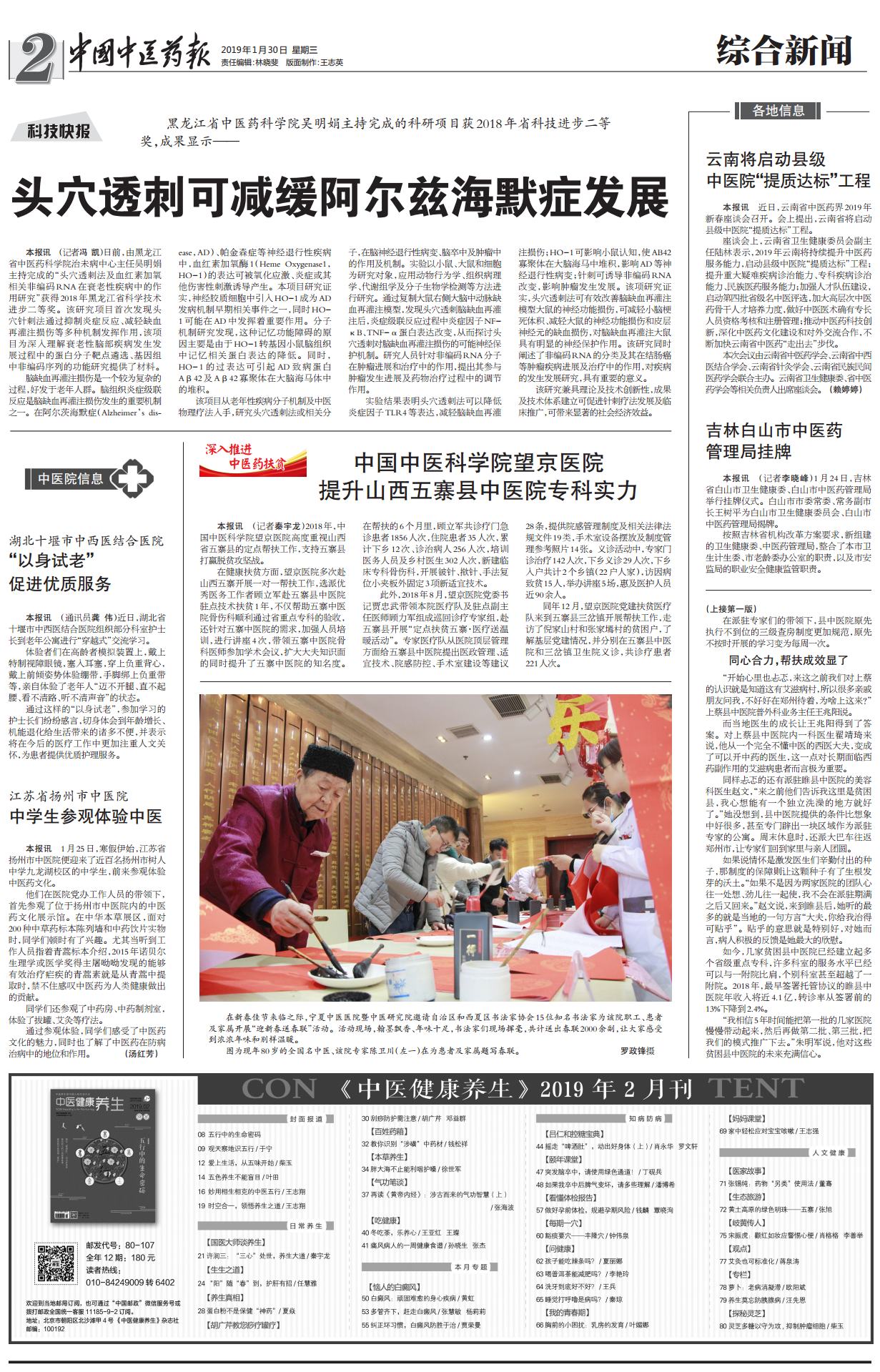 本网讯(文/韩序)2019年1月30日,《中国中医药报》在第5018期头版,以“省县医院手拉手 健康扶贫心连心”为题,报道了一附院帮扶睢县中医院、上蔡县中医院相关工作,对医院在健康扶贫中创新形式、真抓实干,大幅提升国家级贫困县整体医疗水平、实现多方共赢的成绩予以充分肯定。
