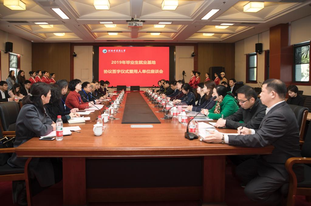 上午10:00,在图书馆第三报告厅,校党委书记别荣海,副校长冯卫生,校党委委员、副校长田力、校工会主席张加民带领校长办公室、教务处、学生处、招生就业处、研究生工作部等部门的负责同志参加了学校与来自省内外的13家用人单位、合作单位召开的2019届毕业生就业基地签约仪式暨用人单位座谈会。