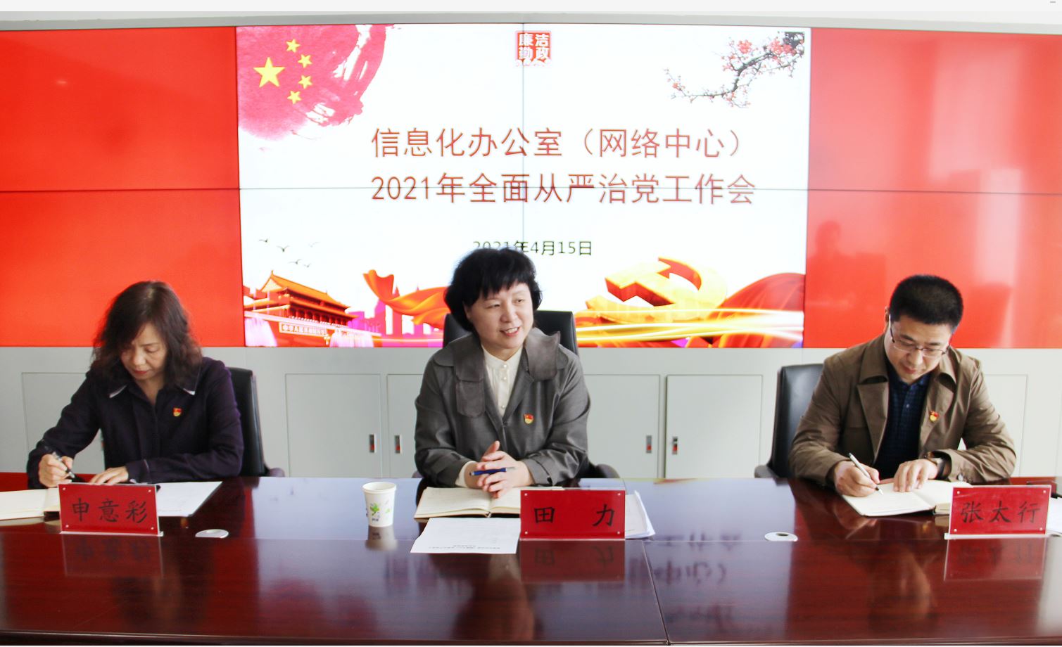 本网讯(文/余孝奎 图/王海莉)2021年4月15日上午,信息化办公室(网络中心)召开2021年全面从严治党工作会,校党委委员、副校长田力及部门全体党员干部参加会议,非党员同志列席会议,会议由信息化办公室副主任张太行主持。
