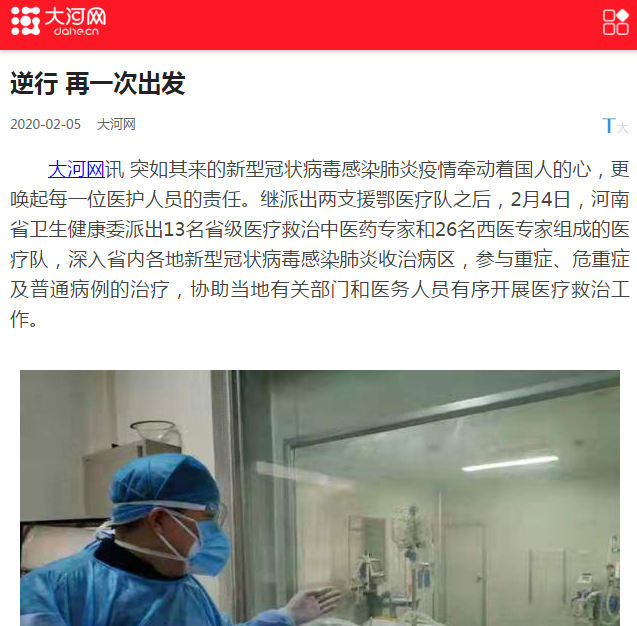 大河网讯 突如其来的新型冠状病毒感染肺炎疫情牵动着国人的心,更唤起每一位医护人员的责任。继派出两支援鄂医疗队之后,2月4日,河南省卫生健康委派出13名省级医疗救治中医药专家和26名西医专家组成的医疗队,深入省内各地新型冠状病毒感染肺炎收治病区,参与重症、危重症及普通病例的治疗,协助当地有关部门和医务人员有序开展医疗救治工作。