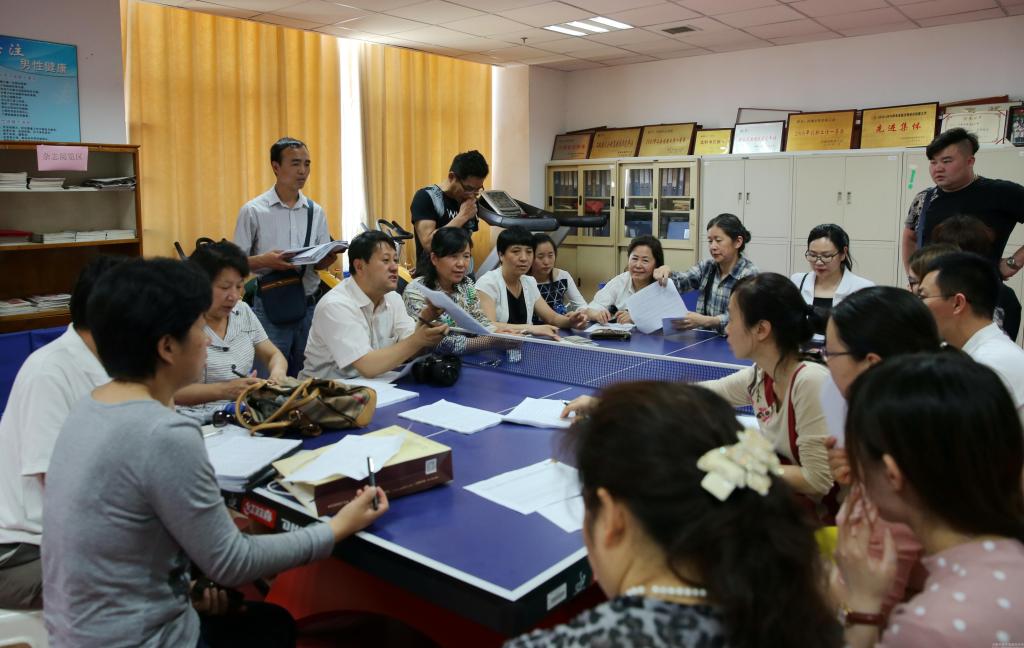 2015年5月19、20日,郑东新区博学路办事处对leyu·乐鱼(中国)体育官方网站新校区周转公寓16栋家属楼一千多户住户进行逐户、入户登记核实信息,办事处计生办主任平江惠、副主任刘凤枝带领40多名调查员来到leyu·乐鱼(中国)体育官方网站。leyu·乐鱼(中国)体育官方网站副校长张小平代表党政领导在周转公寓东门口热情迎接检查组的到来。工会副主席曹蕴俐、工会办公室主任张婉红、校计生办主任郭书伟等26位计生专干配合办事处人员一起参与了入户信息采集的全过程,为leyu·乐鱼(中国)体育官方网站采集录入工作顺利完成奠定了基础。