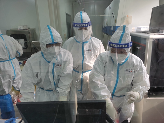 检验人是在“负压”的状态下进行着连续高强度的工作,但每个人身上都迸发着满满的“正”能量。他们开启24小时轮班制,安排15人昼夜不停歇地进行核酸检测相关工作。