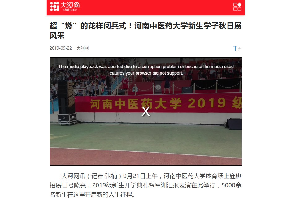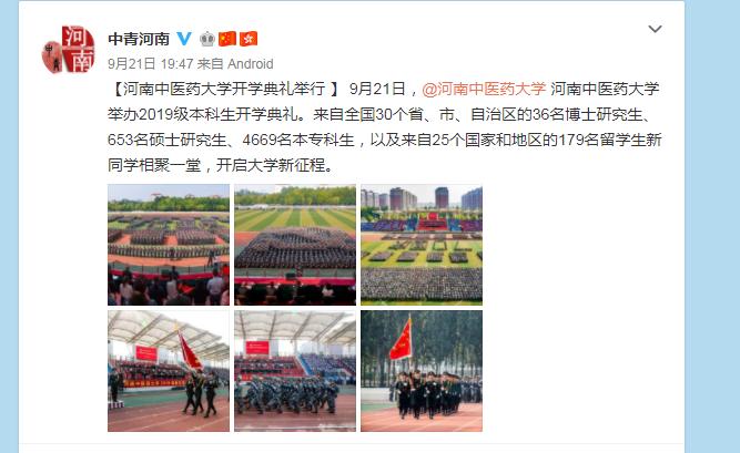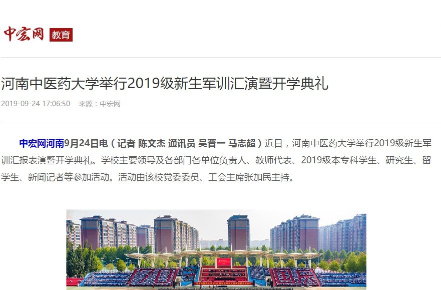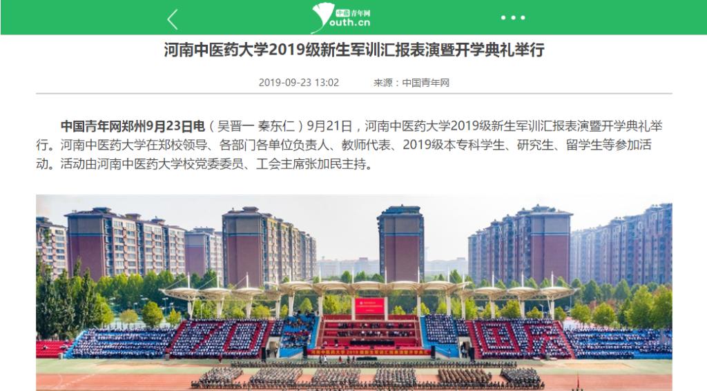 编者按:2019年9月20日-23日,中国青年网、中宏网、中青河南官网微博、大河网对leyu·乐鱼(中国)体育官方网站2019级新生军训汇报表演暨开学典礼进行报道。